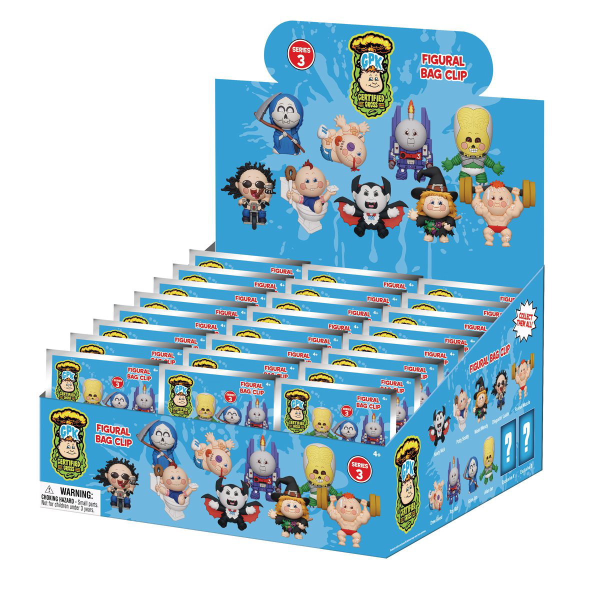 Get ready for a dose of outrageous fun with the Garbage Pail Kids Series 3 Figural Bag Clip Blind Pack! Dive into the zany universe of Garbage Pail Kids, where gross meets hilarious in the most unexpected ways. Each blind pack contains a surprise assortment of figural bag clips featuring beloved characters from the Garbage Pail Kids franchise. From bizarre mutants to mischievous troublemakers, these quirky characters are sure to bring a smile to your face. Crafted with attention to detail and durable materials, these bag clips are perfect for adding a touch of whimsy to your backpack, purse, or keychain. Whether you're a longtime fan or new to the world of Garbage Pail Kids, the Series 3 Figural Bag Clip Blind Pack promises endless laughs and surprises!