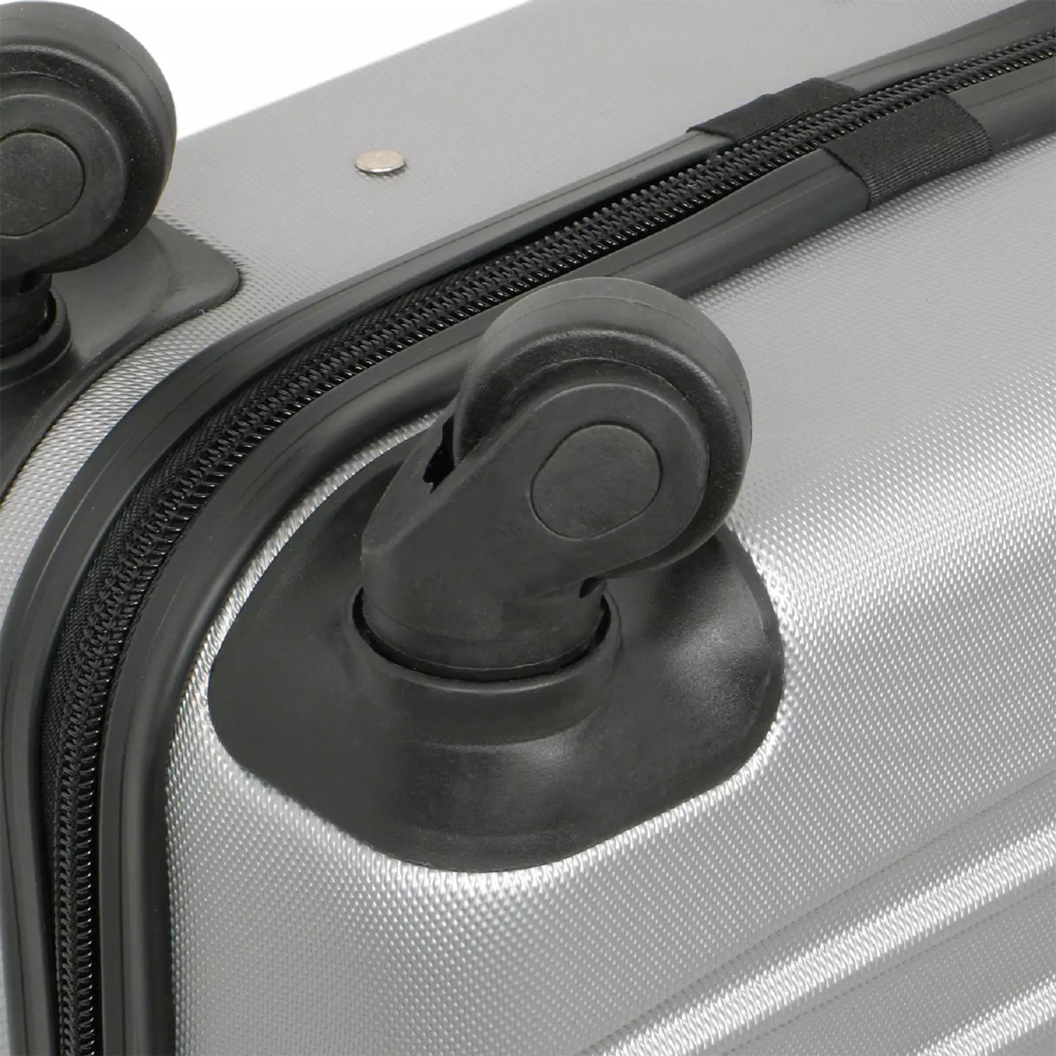 This Geoffrey Beene 2-Piece Hardside Luggage Set is made with 360° spinning wheels, which makes it easy to navigate airports. The main section is very large and allows for plenty of interior storage. The handle system is telescopic and locks into the height you adjust it to.