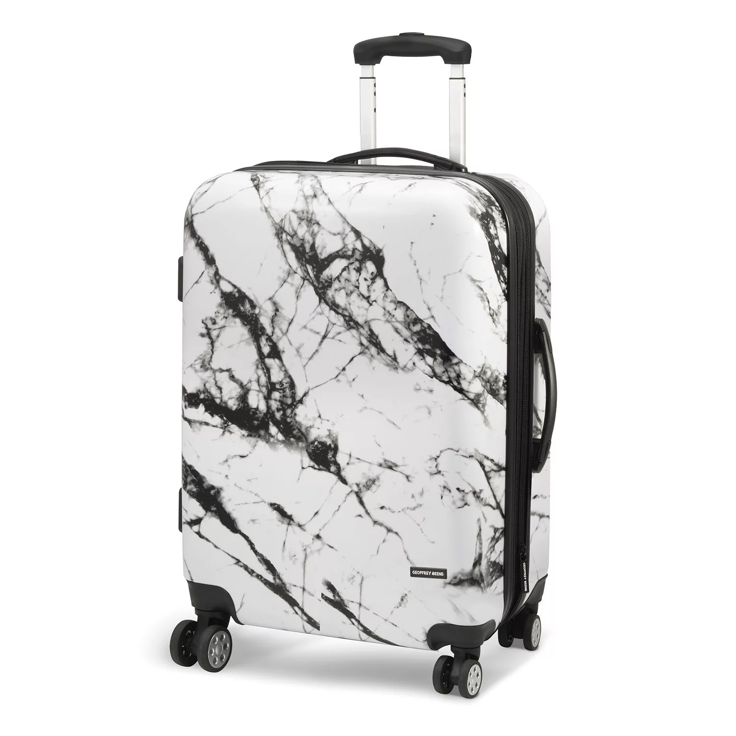 Boasting 360-degree spinner wheels, this Geoffrey Beene two-piece marble hard side luggage set glides effortlessly down hotel hallways and airport terminals. Telescoping handles make these suitcases easy to steer, while the top and side handle let you grab each bag as it rolls by on the luggage carousel.