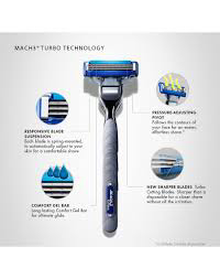 With your Gillette Mach3 Men's Razor, Handle + 13 Blade Refills each razor comes with three Duracomfort™ blades. The three blades provide you with a closer shave thanks to their progressive cutting. Each progressive blade cuts closer and closer for the close shave you need. And don't worry about nicks and cuts; the Gillette Mach3's lubrication strip glides across your skin, releasing lubricants along the way in order to protect your skin from redness and irritation, while the microfine skin guard helps stretch your skin and prepare it for being cut. The combination of the microfine skin guard and the lubrication strip make the Gillette Mach3 blades optimal for cutting close with lower risk.