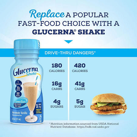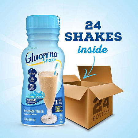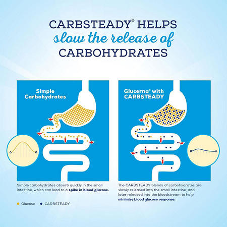 Glucerna shakes are delicious grab-and-go meal or snack replacements designed for people managing their blood sugar. Glucerna Shakes have CARB STEADY, unique blends of slow-release carbohydrates to help manage blood sugar,* as well as 10 grams of protein, 180 calories, and essential vitamins & minerals. They are suitable for lactose intolerance and are gluten-free. Glucerna is the #1 brand recommended by doctors for people with diabetes. *Designed to help minimize blood sugar spikes compared to high-glycemic carbohydrates.