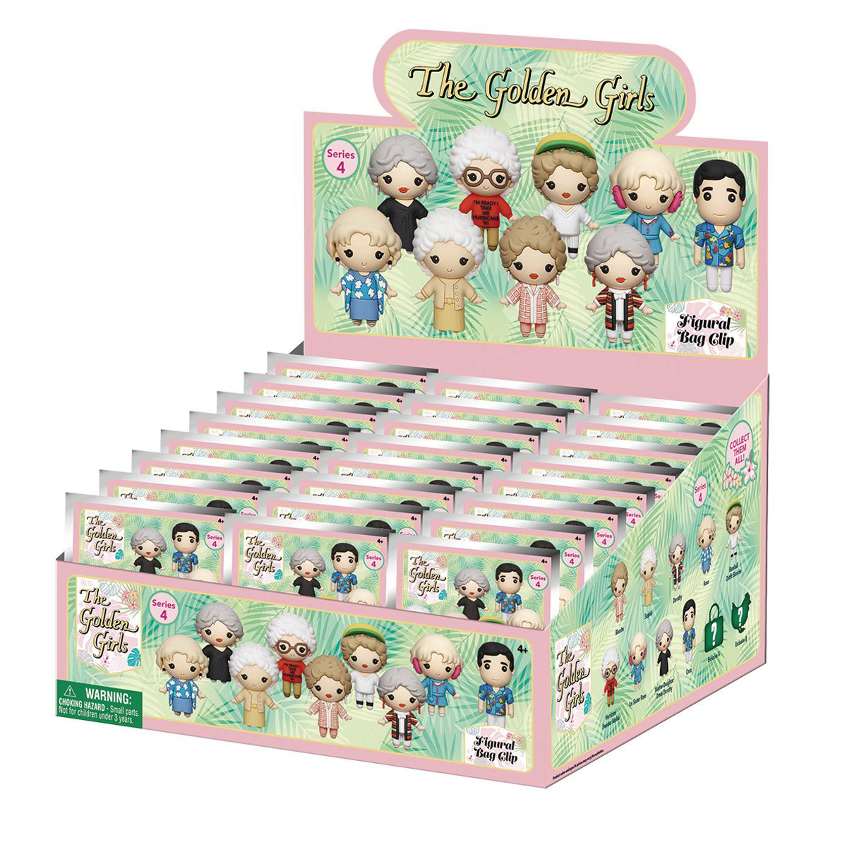 Bring a smile to your face every time you reach for your keys or bag with the Golden Girls Series 4 Figural Bag Clip Blind Pack. This blind pack contains a surprise assortment of figural bag clips featuring your favorite characters from the iconic TV show. Whether you're a fan of Dorothy, Rose, Blanche, or Sophia, you'll love collecting and displaying these charming clips. Each bag clip is meticulously detailed and perfectly captures the essence of the beloved characters. Attach them to your backpack, purse, or keychain to show off your love for the Golden Girls wherever you go. With their durable construction and vibrant designs, these bag clips make a fun and nostalgic addition to any collection.