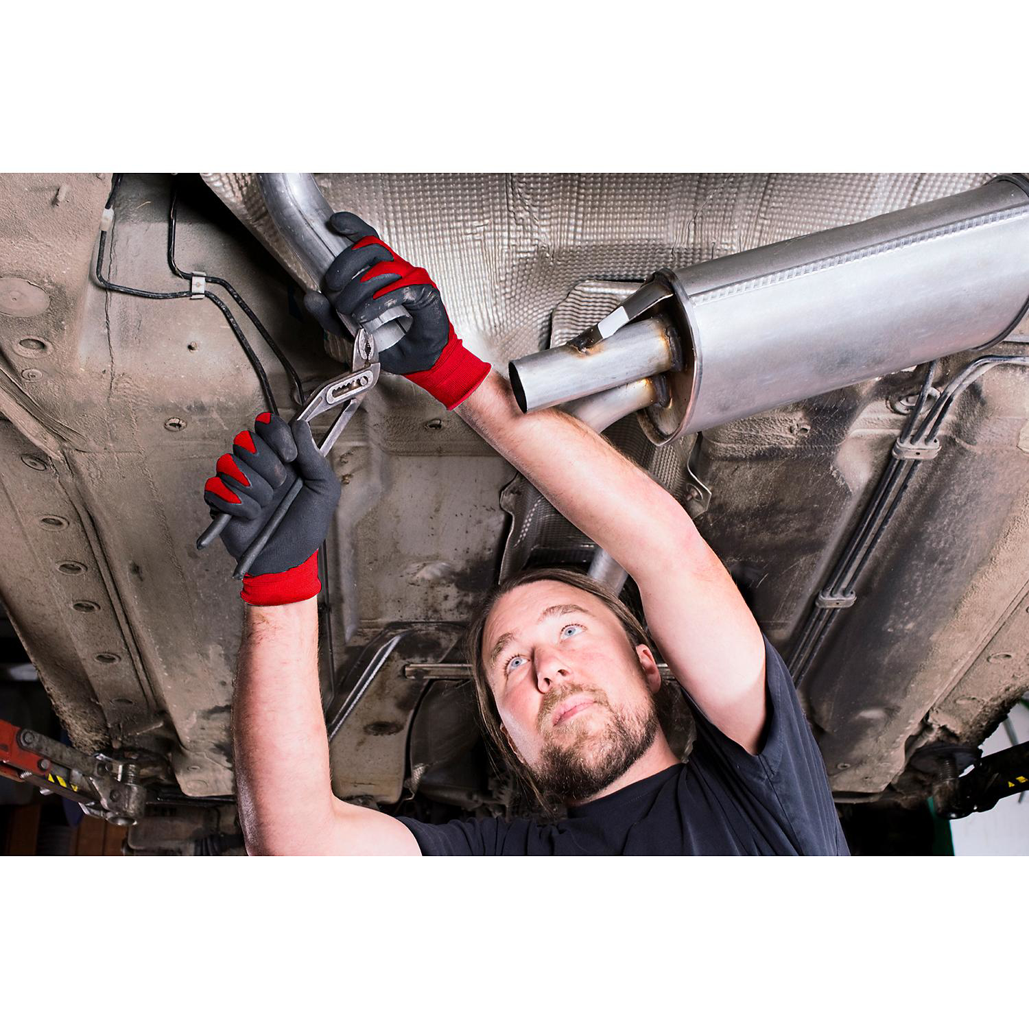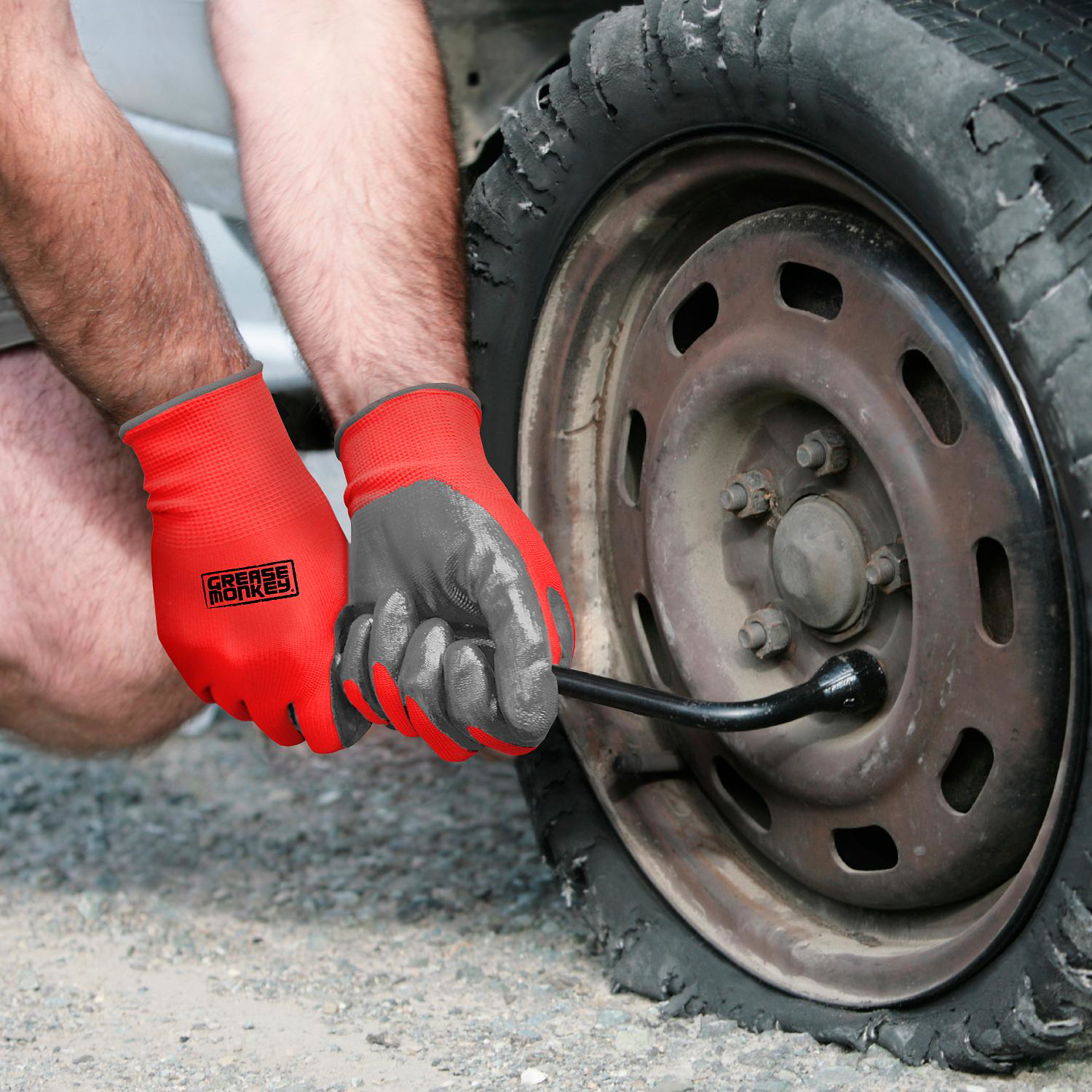 Grease Monkey Nitrile-Coated Work Gloves are perfect for a variety of jobs. Keep a steady grip even with oils and fluid in the garage. Take on plumbing tasks under the sink with ease. These nitrile-coated work gloves are lightweight and allow for maximum range of motion. The nitrile coating protects your hands and provides a strong grip. On the backside, it's a different story. The knit back keeps your hands dry by allowing them to breathe while working. Less sweat means less breaks and less risk of losing grip. In environments with lots of debris, the elastic wrist bands work to keep stuff from getting into your gloves as you work. This box includes 15 pairs of gloves, helping you get a handle on all kinds of jobs. Work with comfort and peace of mind with these nitrile-coated gloves.