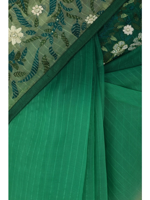 Green Ombre Dyed and Embroidered Muslin Saree