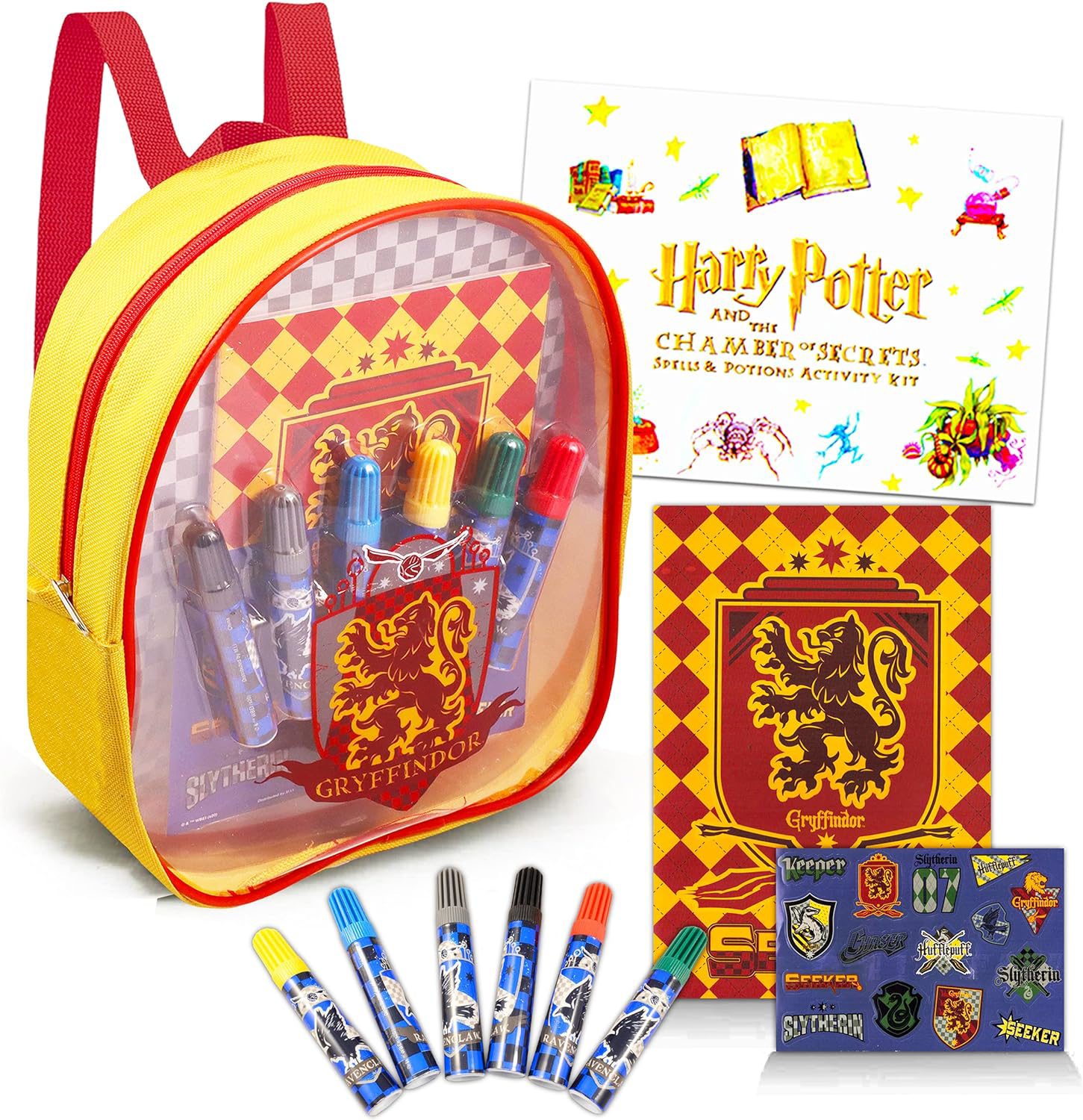 HARRY POTTER ART KIT BACKPACK: Straight from the Wizarding World of Harry Potter, this Gryffindor Art Supplies Mini Backpack is perfect for Harry Potter fans who love to color, draw and be creative! The lightweight Harry Potter art supplies kids mini backpack comes with 6 felt art markers, 1 notebook and 1 sticker sheet