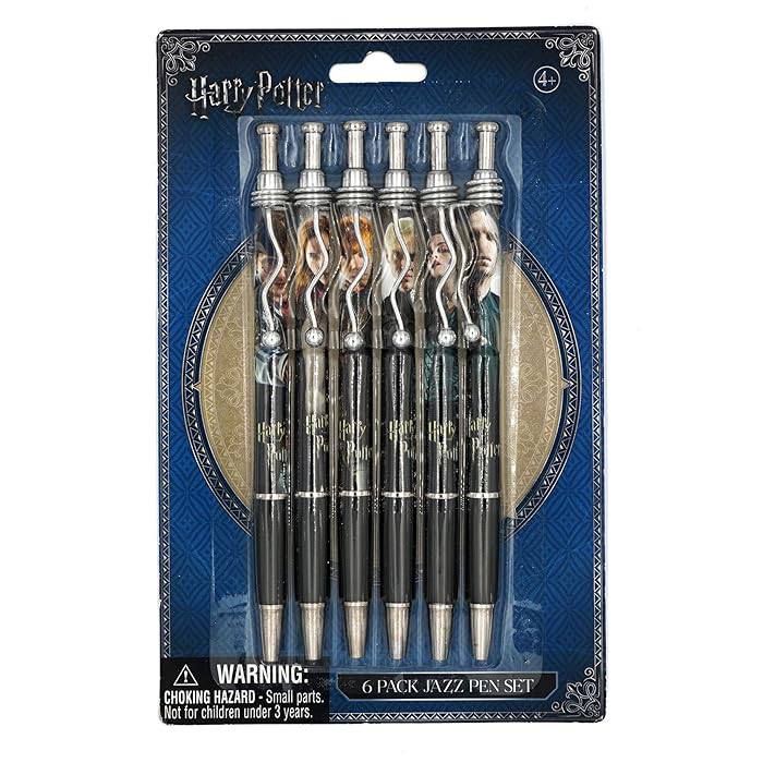The retractable design of these pens provides convenience and protects the pen tip when not in use, while the sturdy construction ensures durability for long-lasting enjoyment. Whether you're a dedicated member of Dumbledore's Army or simply a fan of magical adventures, this 6 Pack Jazz Pen Set is sure to delight fans of all ages.