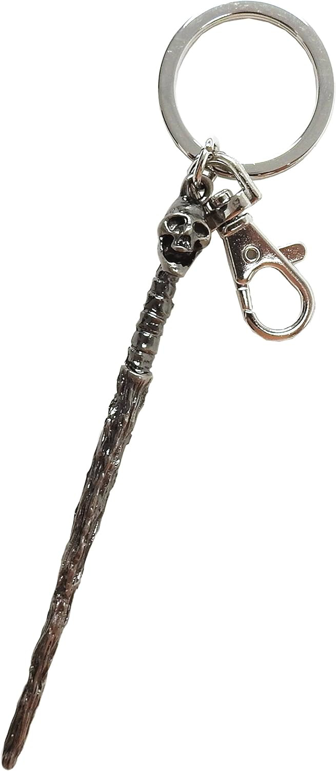 From the Harry Potter book and movie series, indulge your dark side with this Death eater wand Pewter key ring. The key ring features elaborate details like the skull on the top. This key ring is a real show-stopper item for a Harry Potter fan.