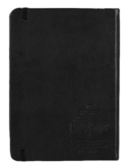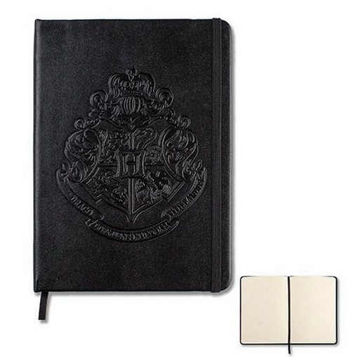 Celebrate your Hogwarts pride with this bespoke journal. The journal features the iconic Hogwarts house crest embossed on a black faux-leather cover. A black ribbon bookmark helps to keeps your place and the elastic closure keeps book securely closed.