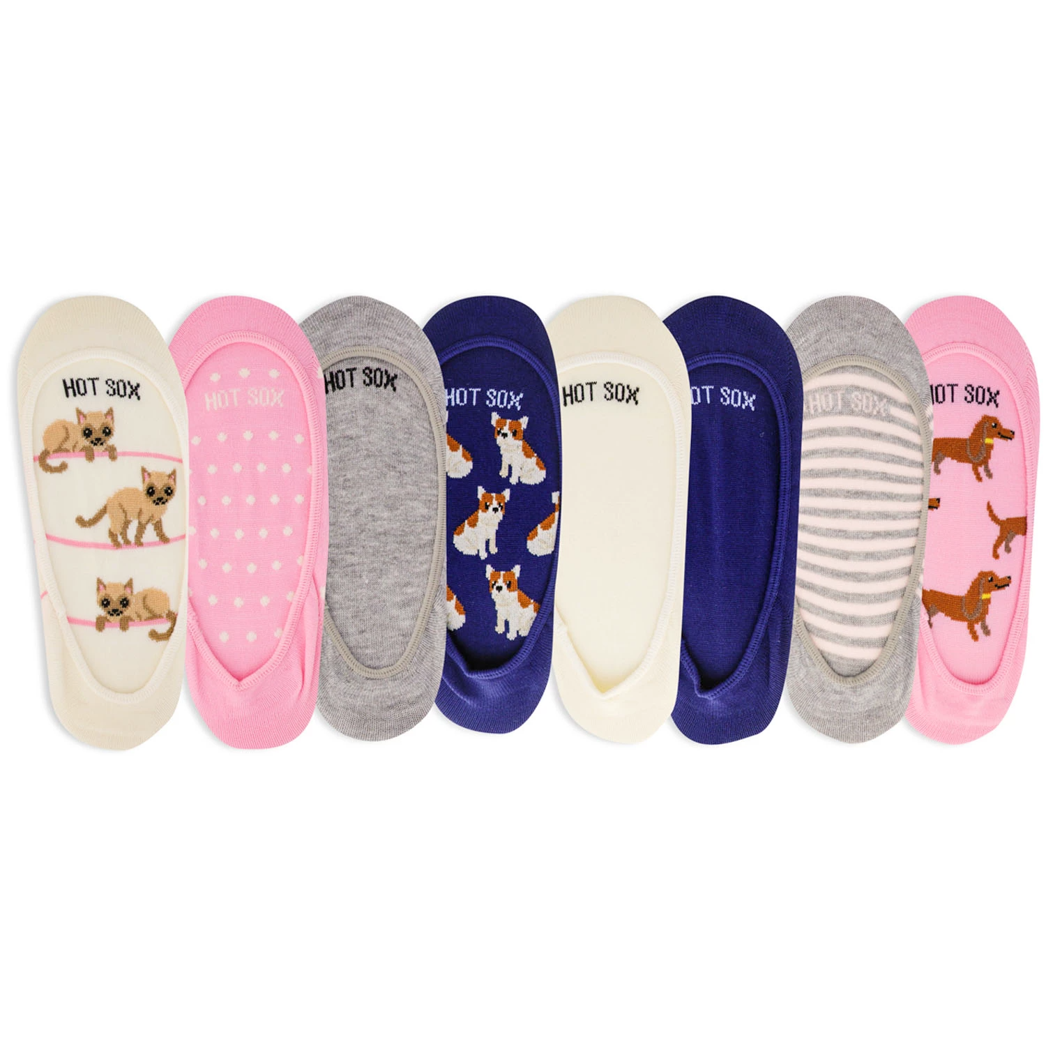 This eight-pack of Hot Sox liners features a non-slip gripper on the heel so they stay in place. The set includes basic colors and an assortment of novelty prints.