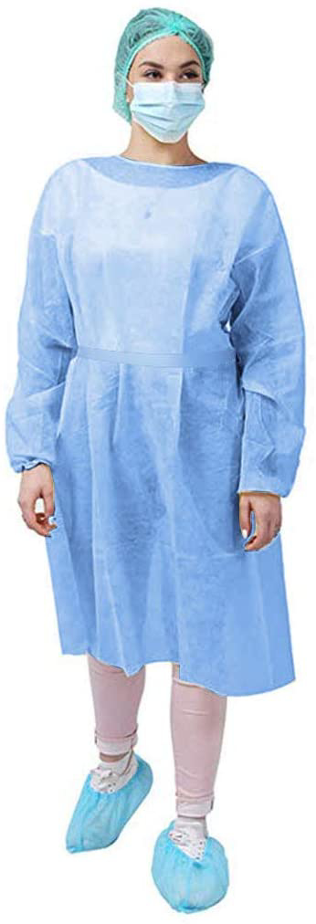 PROTECTIVE GOWNS: Polypropylene gowns are intended to provide healthcare workers and patients with temporary clothing for a variety of settings. Not made with natural rubber latex. Isolation Gowns for patient and healthcare worker protection. Disposable gown provides economical, comfortable, and reliable protection for patient modesty and hygienic security. Ideal for exams, lab procedures, surgery, and more. (not include hats and shoes)