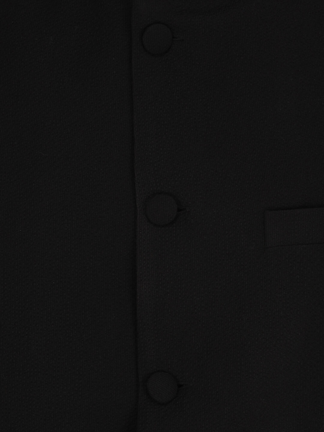Ivory cotton panjabi with in-seam side pockets. Comes with white viscose-cotton pajama with elastic waist. A black jacquard mixed fabric waistcoat comes with this set.