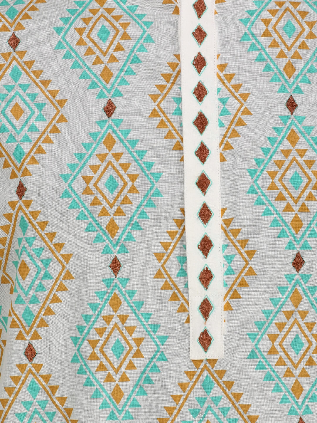 Ivory printed Addi cotton panjabi with embroidery. Features in-seam pockets. Pair with pajama, waistcoat and other accessories.