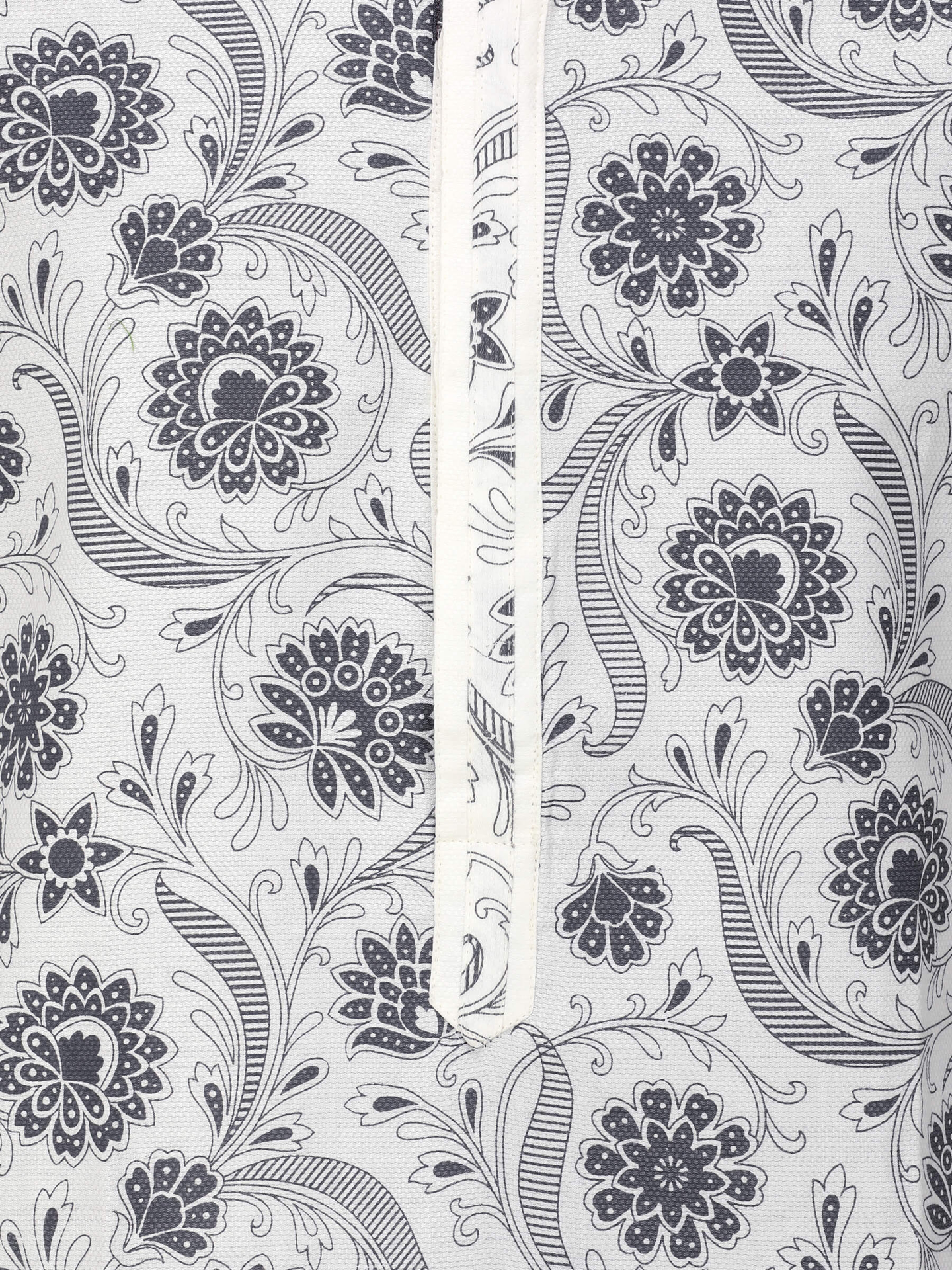 Ivory Printed and Embroidered Slim Fit Viscose-Cotton Panjabi