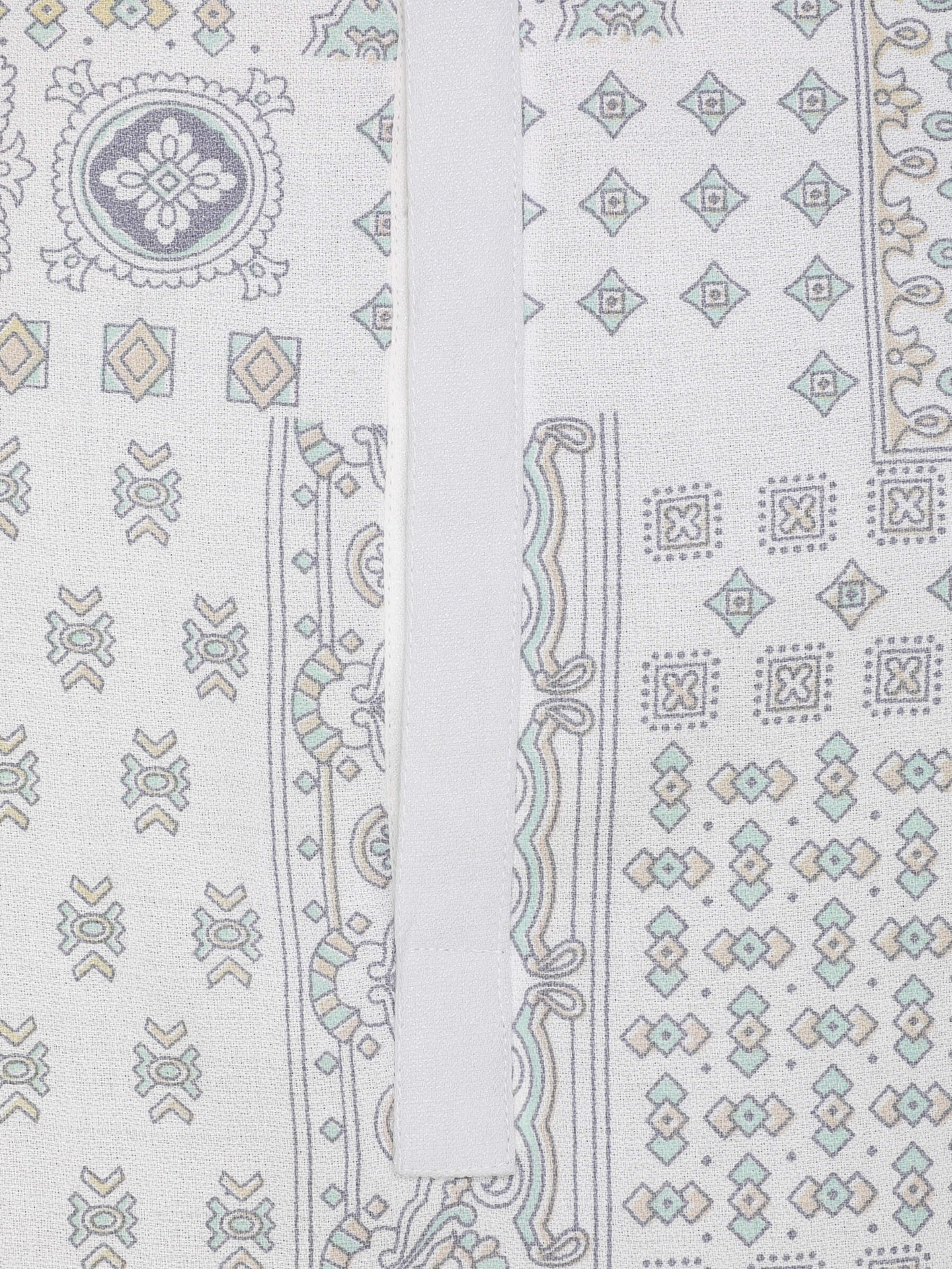 Ivory viscose panjabi with light mint green, grey, light purple and beige prints.