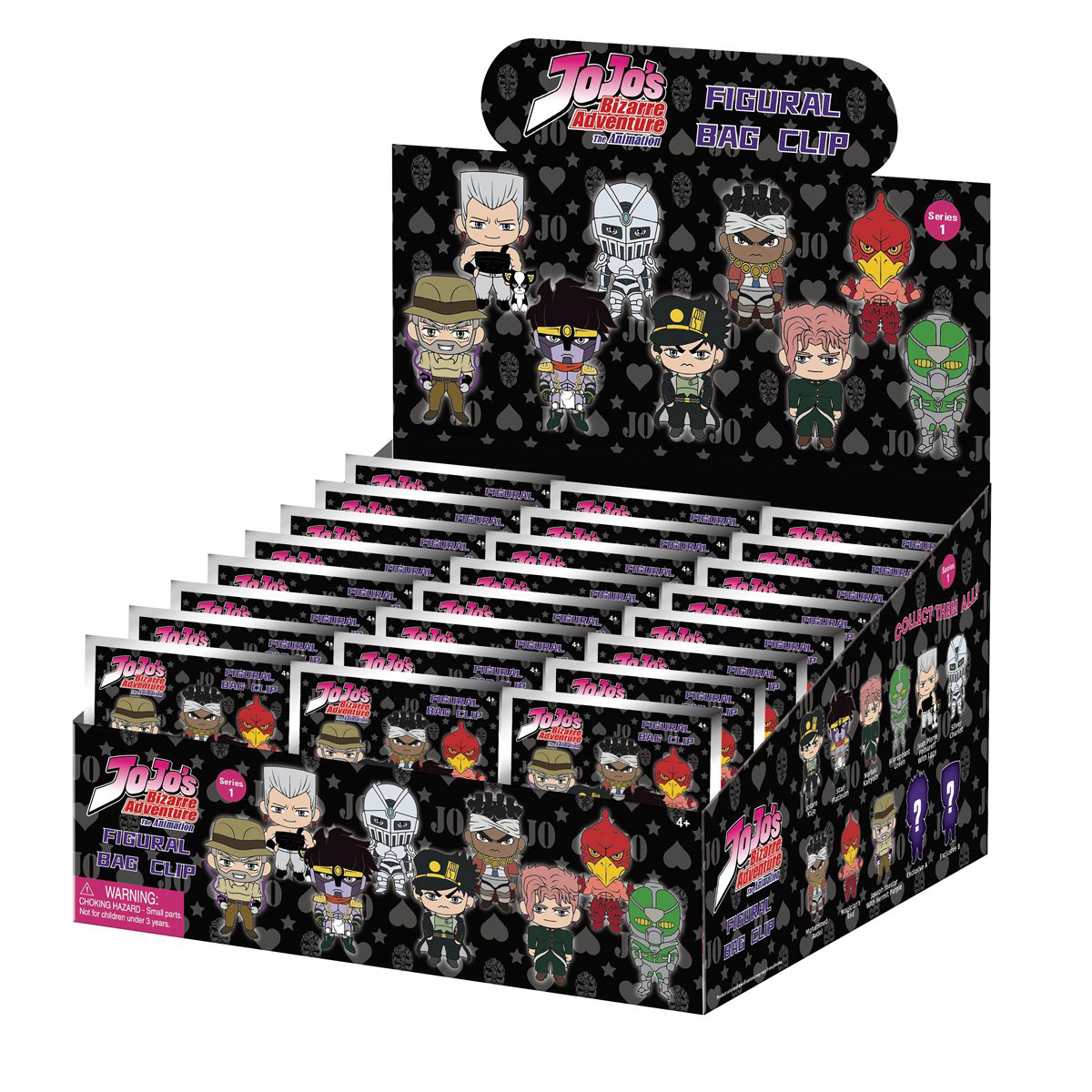 Step into the extraordinary universe of JoJo's Bizarre Adventure with the Stardust Crusaders Figural Bag Clip Mystery Pack. Each mysterious blind pack contains a surprise character from the epic saga, bringing the thrilling adventures of the Stardust Crusaders to life. Whether it's Jotaro Kujo, Dio Brando, or other memorable characters, these figural bag clips capture the essence of the JoJo universe. Attach them to your bags, backpacks, or keys to showcase your love for this beloved series. Join the quest, collect them all, and embark on a bizarre journey with the Stardust Crusaders!