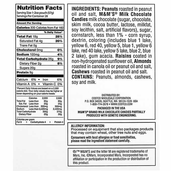 Kosher. Peanuts. M&M's Milk Chocolate Candies. Raisins. Almonds.
