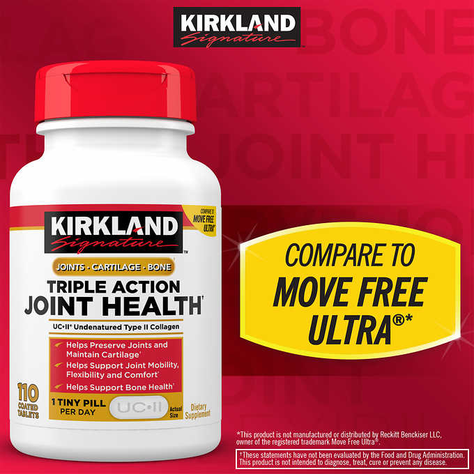 Well now, just one tiny tablet daily is all you need and the benefits are even better with Kirkland Signature Triple Action Joint Health, powered by UC•II