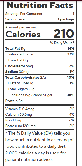 Sugar, Wheat Flour, Cocoa Butter, Chocolate, Vegetable Oil (Palm Oil, Palm Kernel Oil, Lactose (Milk), Skim Milk, Milk Fat, Contains 2% or less of Lecithin (Soy), PGPR, Vanillin, Artificial Flavor, Salt, Yeast, Baking Soda