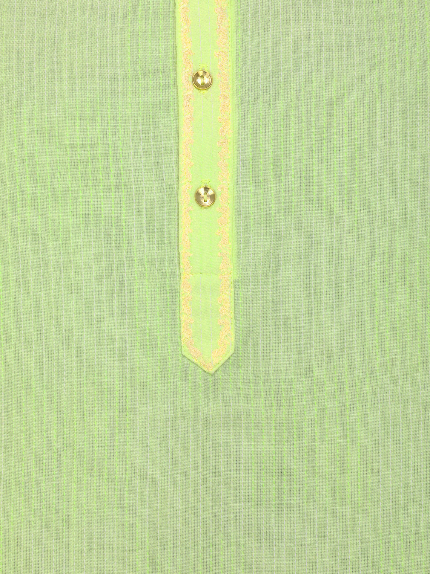 Lemon yellow slim fit viscose-cotton panjabi with beige embroidery and stich.