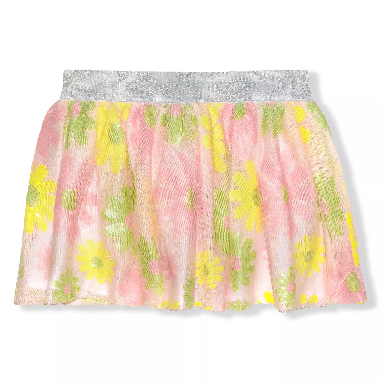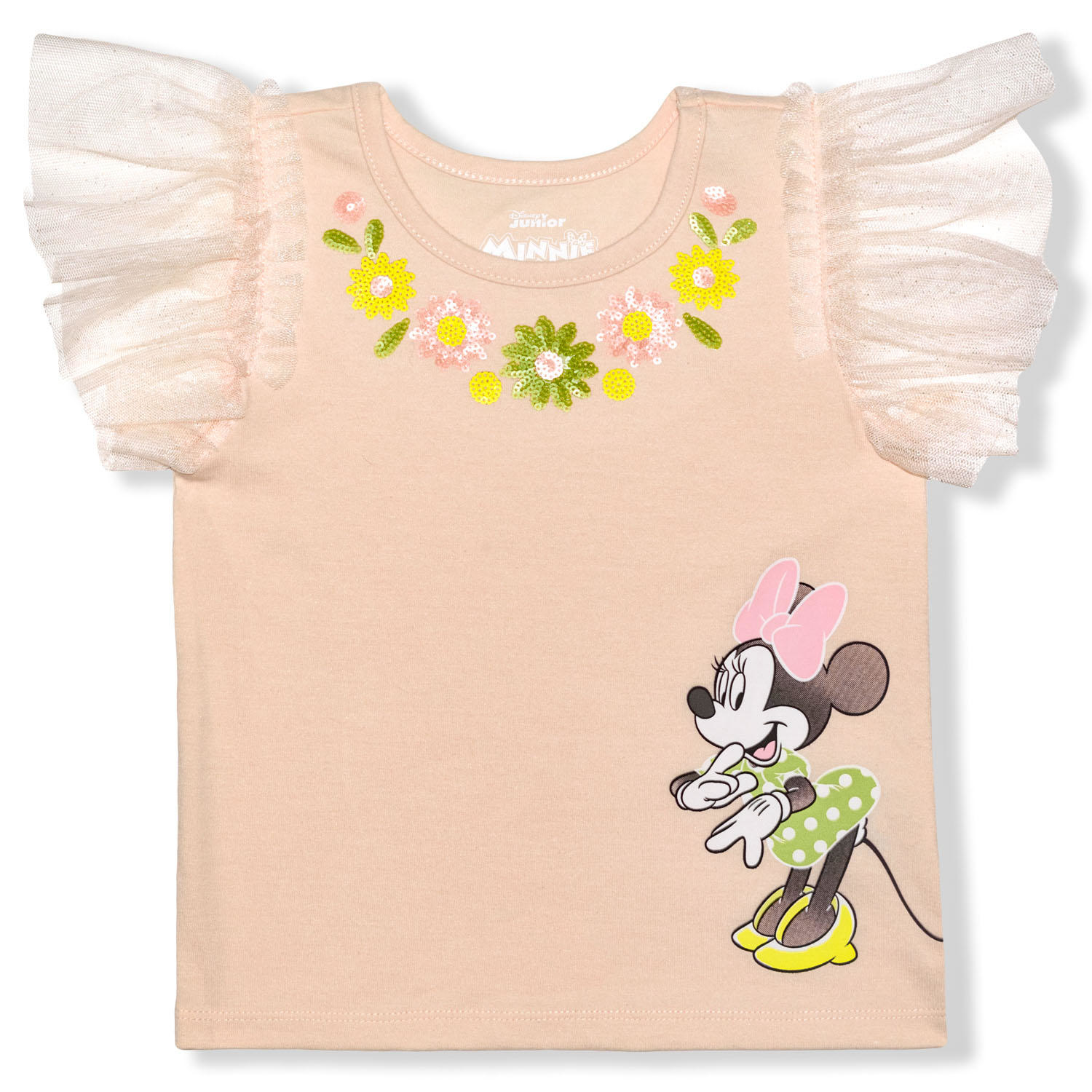 Complete her summer wardrobe with her favorite Disney character- Minnie Mouse! Outfit includes a dark pink flutter short sleeve tee featuring a Dawn printed graphic on the chest popping through a heart with fun star sequin filled glasses lenses and florals graphic surrounding. This set also includes a light pink tulle capped short sleeve cotton tee with a Unicorn doll graphic image with glitter florals and a silver heart applique with DWBJFbjfh e Both tops are paired with a fun multicolored rainbow soft pleated skort with white attached shorts underneath and a 1" pink elastic waistband with the words "LOL Surprise" tagged around the waist for easy on and off access.