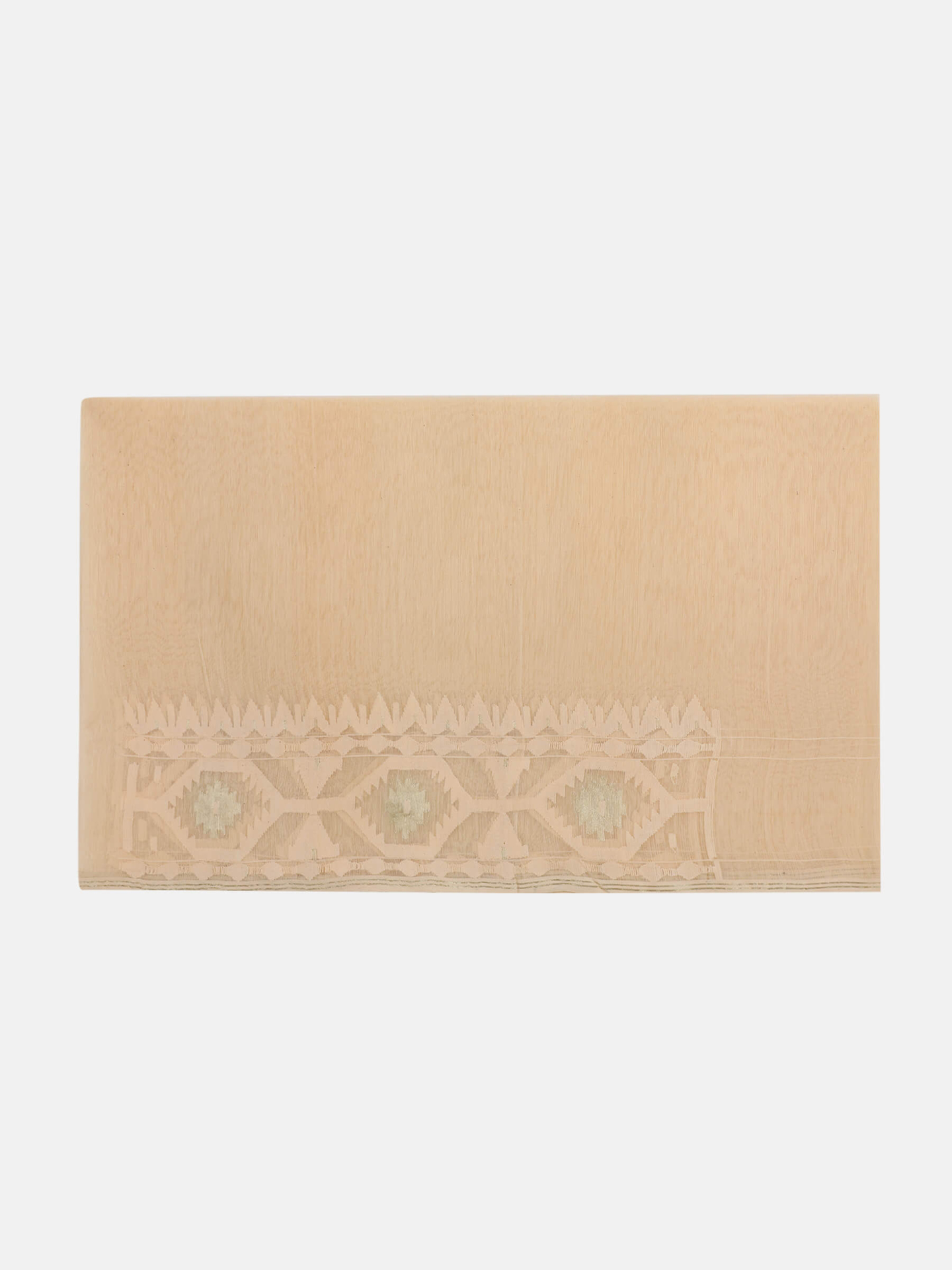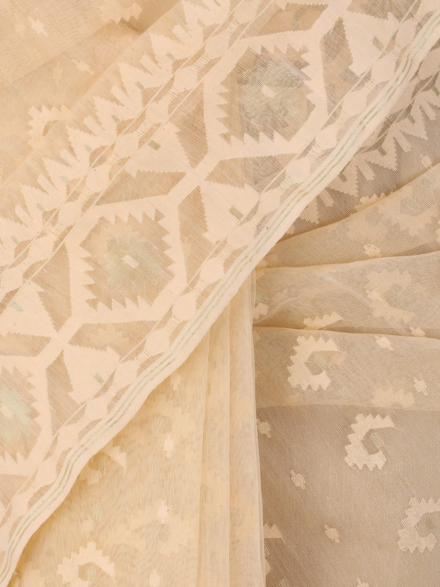 Light beige half silk jamdani saree with light beige and golden buti. Comes with unstitched blouse piece.