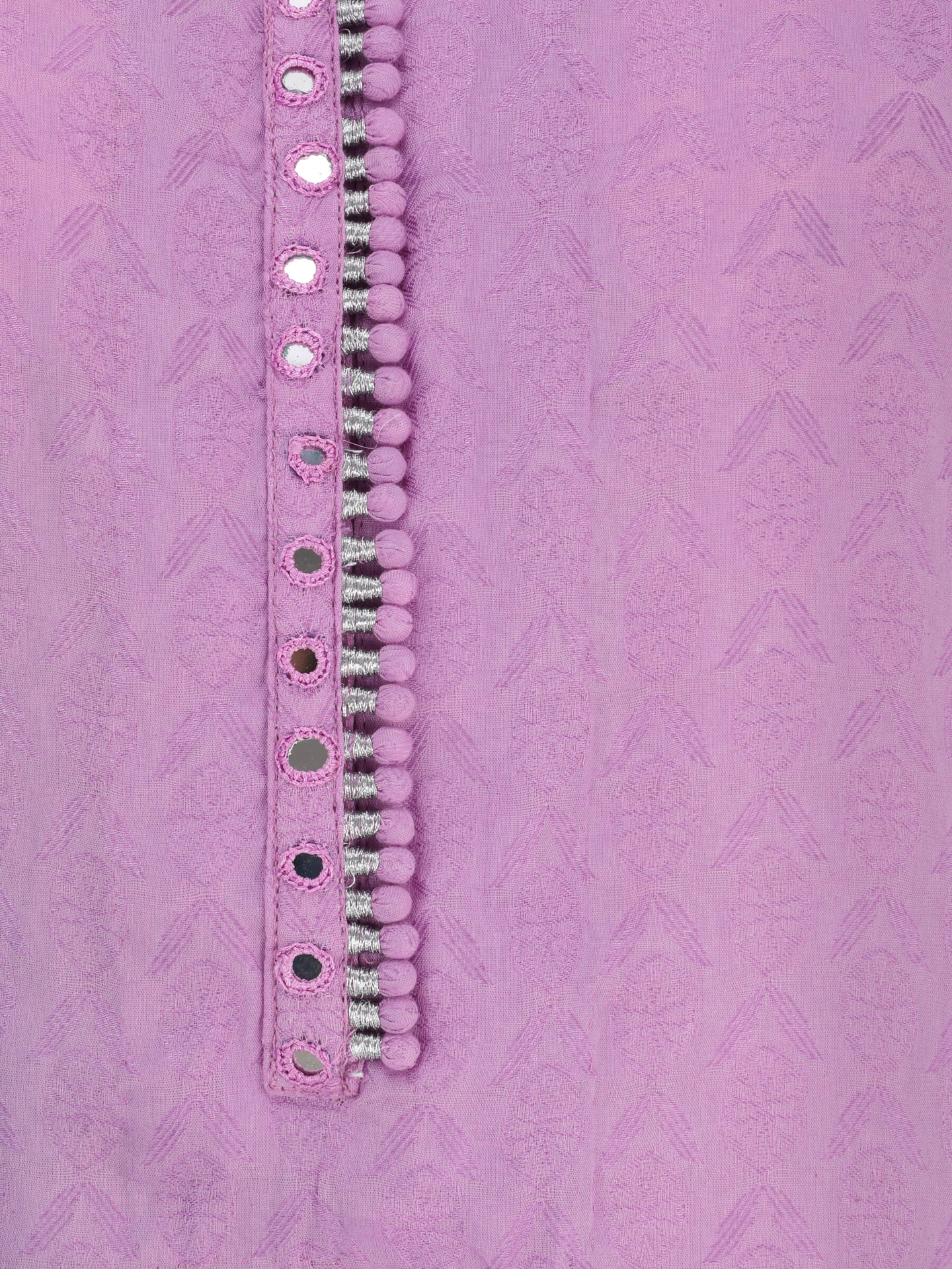 Light Purple Printed and Embroidered Viscose-Cotton Shalwar Kameez Set