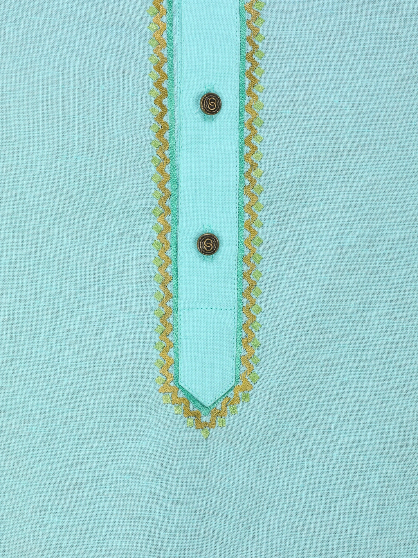 Colour : Light TurquoiseFabric : Mixed CottonValue Addition : Exclusive Hand EmbroideryCollar/Neck : High CollarCut /Fit : Regular FitSleeve : Long SleevePocket : Side PocketLength : LongCare : Hand Wash With Mild Detergent In Cold WaterMadi in : BangladeshBrand Name : ARONGUse for : Men