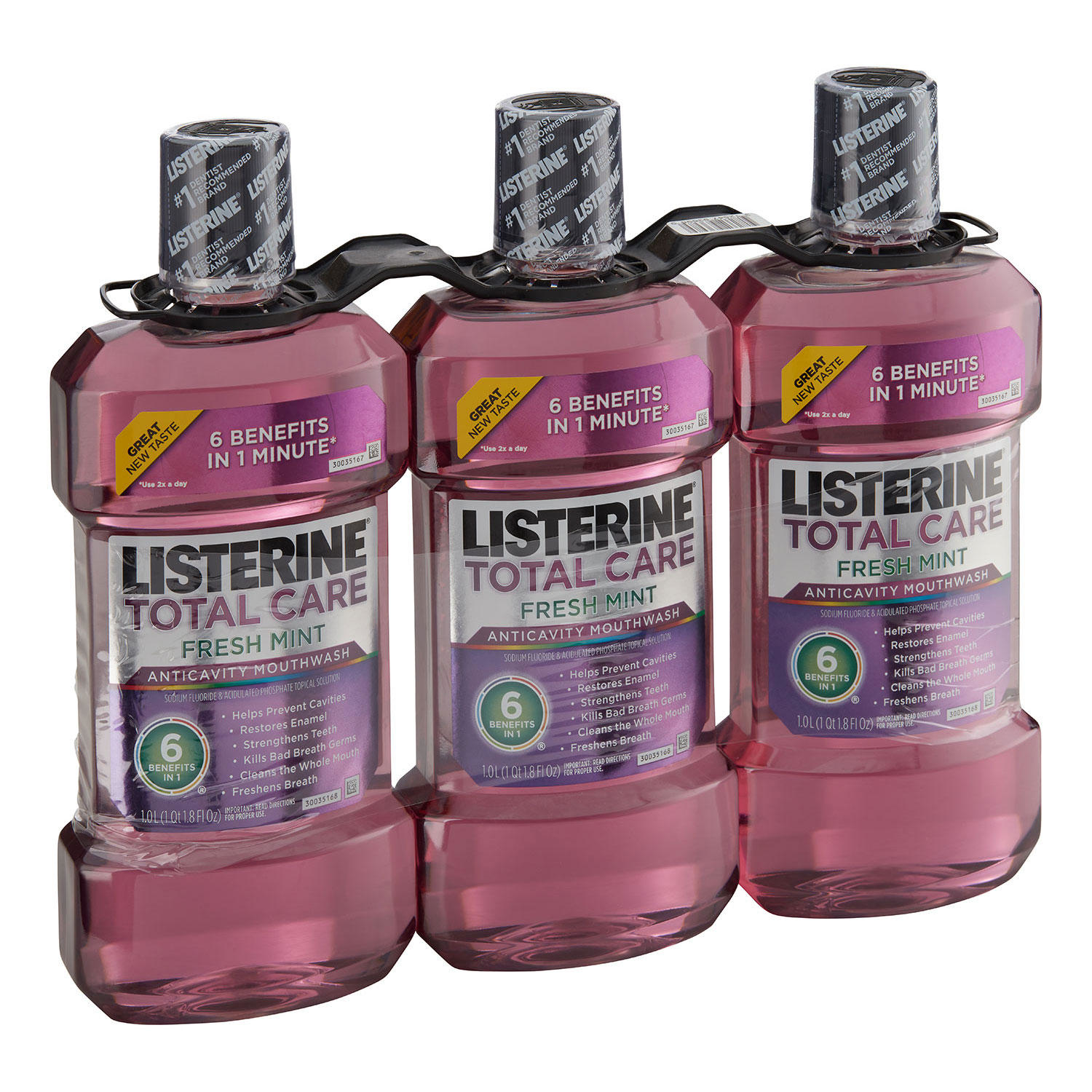 Keep your breath fresh and more using Listerine® Total Care Mouthwash, Fresh Mint (3 pk.). It offers six benefits in one bottle to promote healthy oral hygiene.