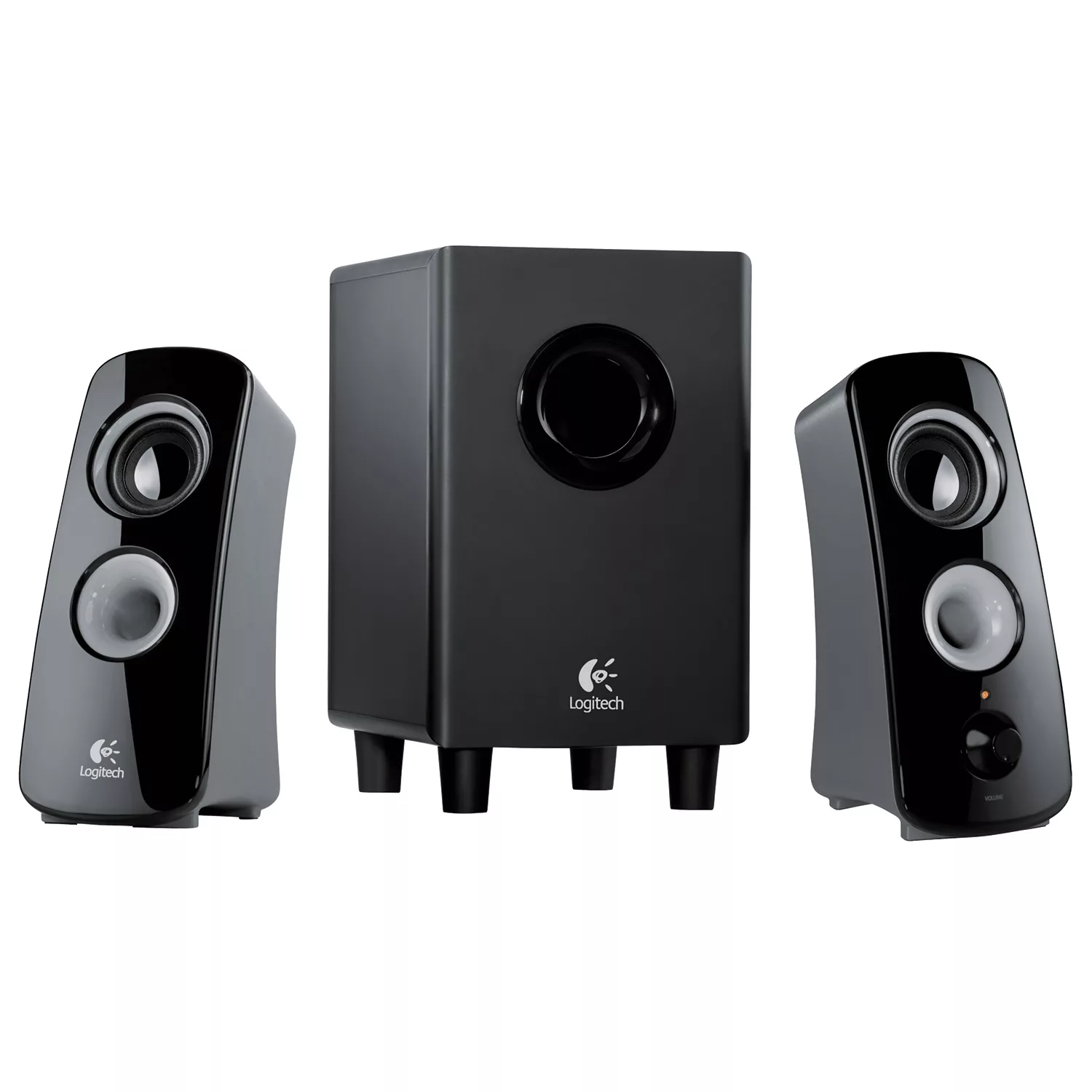 ransport yourself into your music, movies and games with the 30-watt (RMS) Logitech Speaker System Z323. With 360-degree sound, the Z323 speakers help project audio evenly in all directions, so you get a great listening experience throughout the room. 1 dual RCA jack and a 3.5 mm jack make it easy to connect your gaming console, DVD player or iPod.