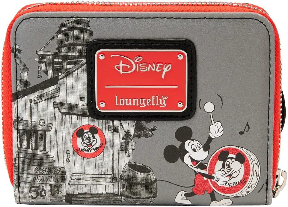 Calling all Mouseketeers! Join the jamboree with the Loungefly Disney100 Mickey Mouse Club Zip Around Wallet. Featuring a grayscale color palette inspired by the original television show, the front of this wallet displays the show’s title card on the front. On the back, Mickey Mouse leads the way with a bass drum as he marches near the clubhouse. Perfect for Disney fans of any age, this timeless accessory will keep your belongings safe wherever you go.