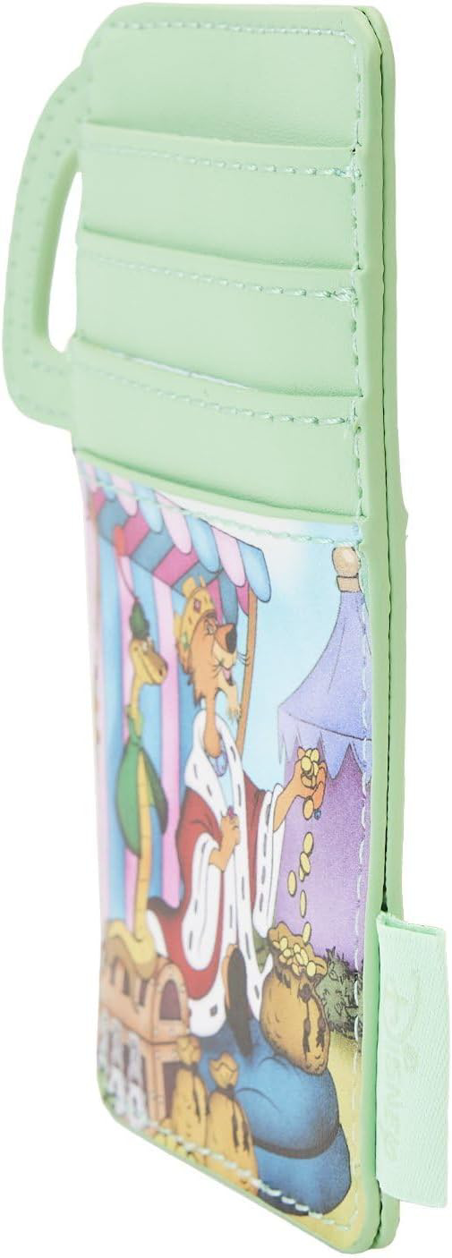 Travel through Sherwood Forest in style with our Loungefly Disney Robin Hood Card Holder! This thermos-shaped card holder is a refreshingly fun accessory, allowing you to keep your favorite animated moments close. Original art brings memorable scenes to life. On one side, Robin Hood and Lady Marian dance in the forest. On the other side, Prince John counts his treasure. Above him, you’ll find 4 slots for holding cards. Take this charming accessory along, as a merry menagerie awaits your latest adventures!