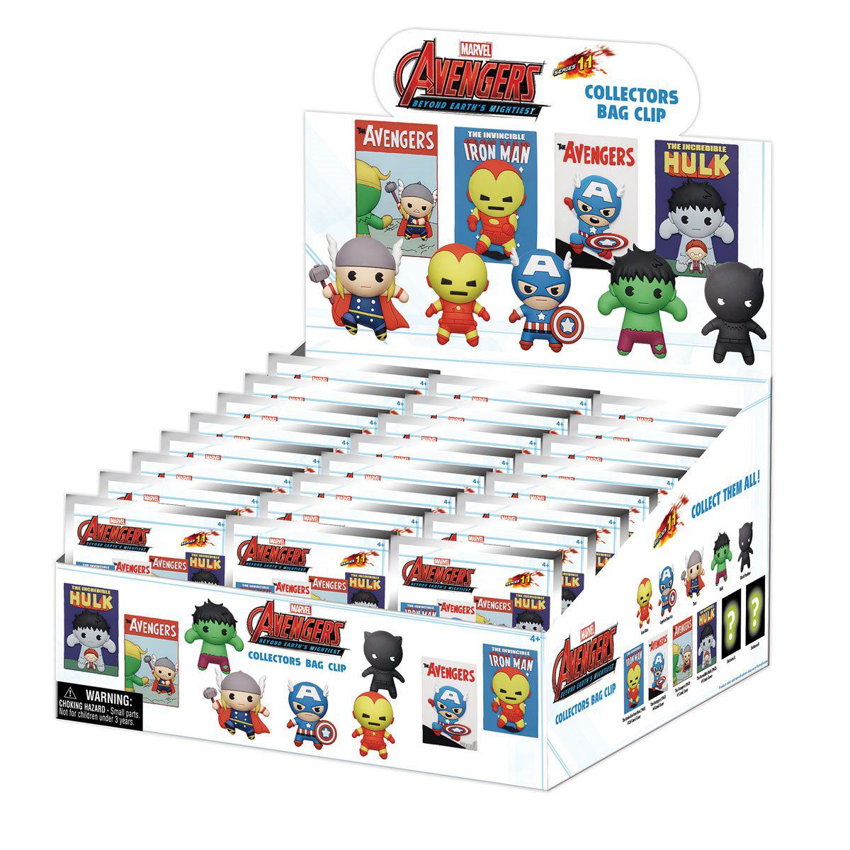 Embark on a nostalgic journey with the Marvel Avengers 60th Anniversary Series 11 Collectors Bag Clip Blind Pack. This blind pack contains 3D Foam Bag Clips showcasing iconic characters and designs from the past 60 years of Avengers history. With an assortment of 11 characters (9 regular and 2 exclusive), these bag clips are made of durable 3D Foam and PVC. The clips have an average length of about 2 inches (excluding the clip), making them perfect for showcasing your love for the Avengers..