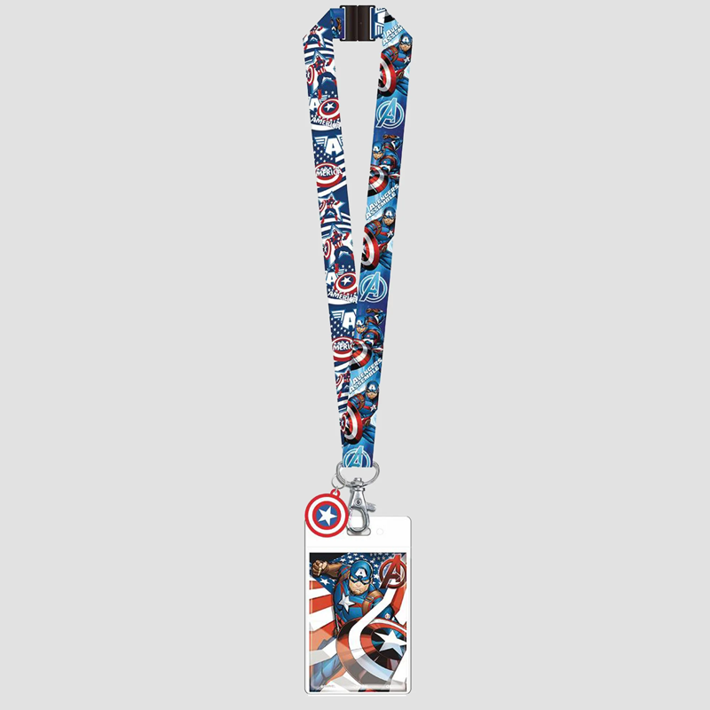 Show your allegiance to justice with our Marvel Avengers Captain America lanyard featuring a card holder and soft-touch dangle. Perfect for fans of Captain America and the Avengers, this lanyard adds a heroic touch to your day.