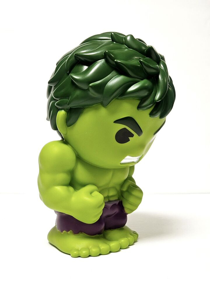 Unleash the power of savings with the Marvel Avengers Hulk Chibi Figural Piggy Bank. This 8-inch piggy bank is crafted with attention to detail.Ideal for Marvel enthusiasts and collectors, it combines style and functionality, making saving a fun and powerful experience. The coin slot is conveniently located on the back, and the piggy bank comes with an easy-to-remove plastic cork at the base.