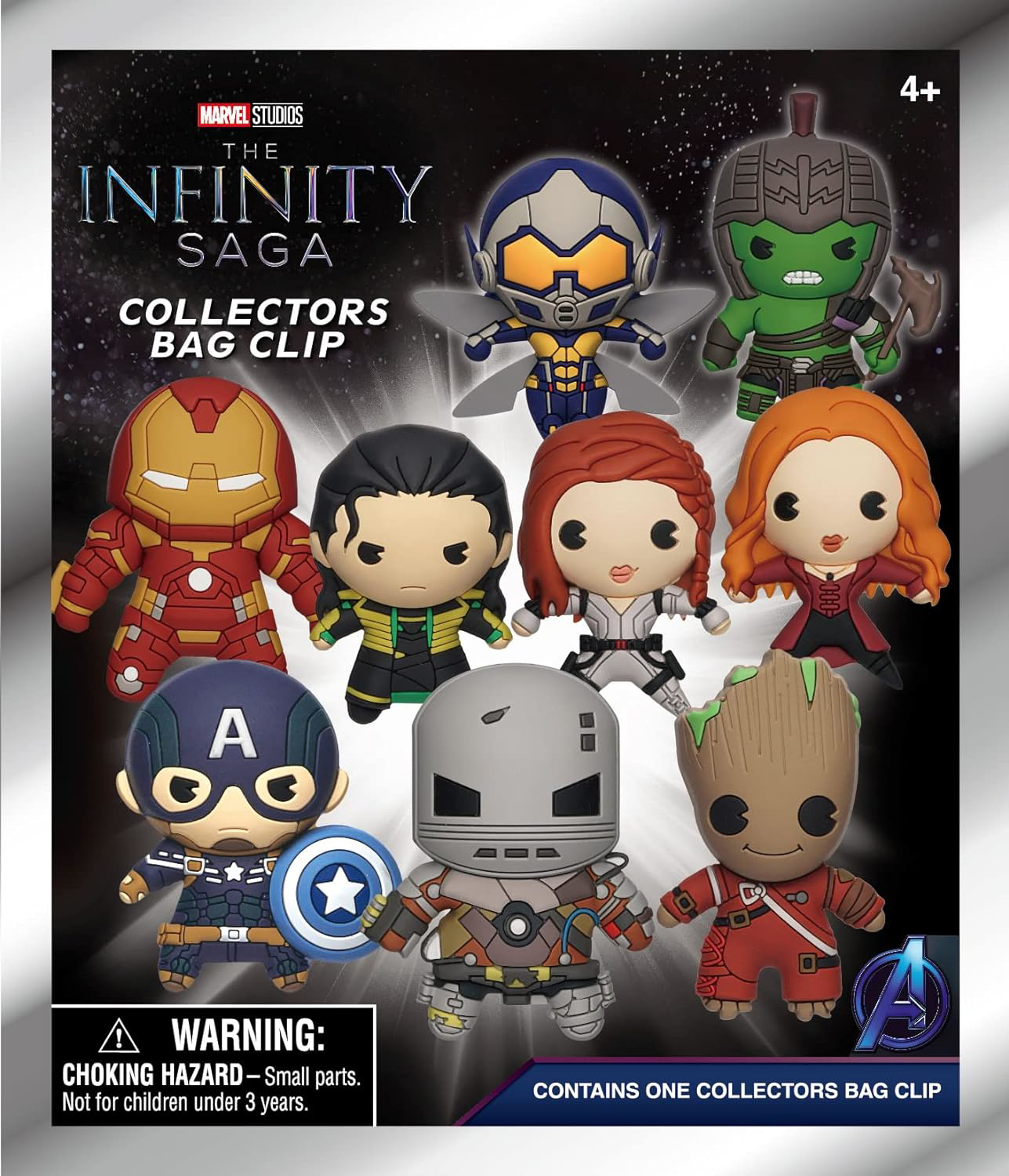 Avengers Infinity Saga blind bag collection from Monogram features key character moments from Marvel Studio's epic Avengers Saga from Iron Man to End Game! With each purchase, receive one blind bag containing one of the eleven characters from the series. Each character bag clip is about 2 inches tall and comes with a plastic claw-type accessory clip. Easy to attach to a book bag or lanyard to add a bit of fun to the everyday!