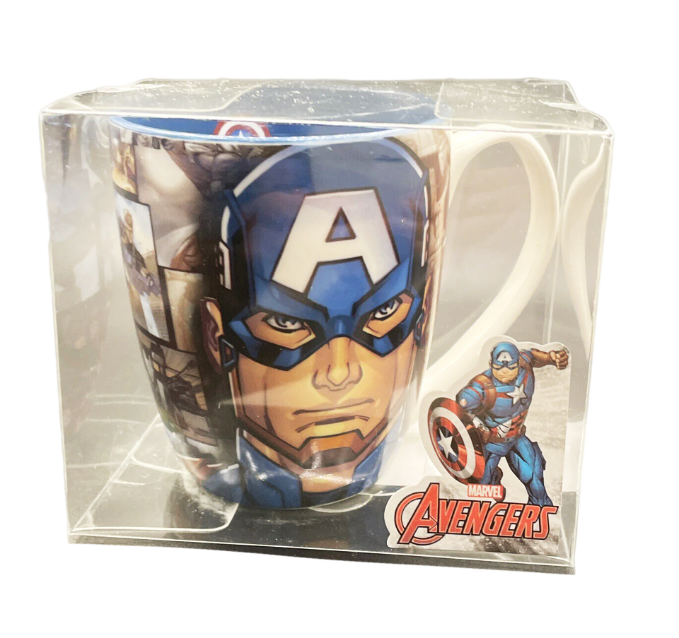 Mug. Featuring a vibrant illustration of Captain America's iconic shield on one side and his determined face on the other, this 12 oz. ceramic mug is perfect for enjoying your morning coffee, tea, or any beverage of your choice. Officially licensed by Marvel, it's a must-have for any Captain America fan or collector.