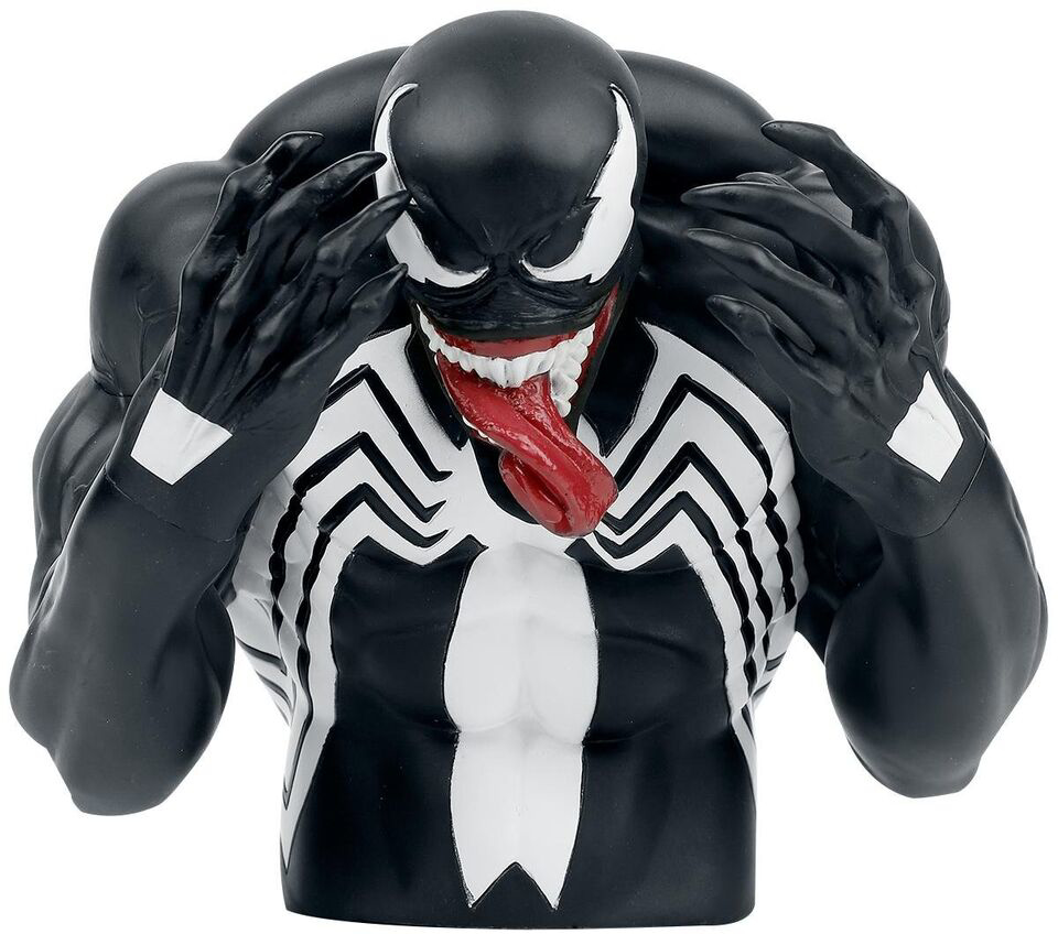 The base is equipped with a removable plastic cork, providing quick access to your savings when needed. Whether you're a dedicated Marvel fan or someone who appreciates unique and eye-catching collectibles, the Venom Bust Figural Piggy Bank stands as a formidable addition to your Marvel-themed treasures.