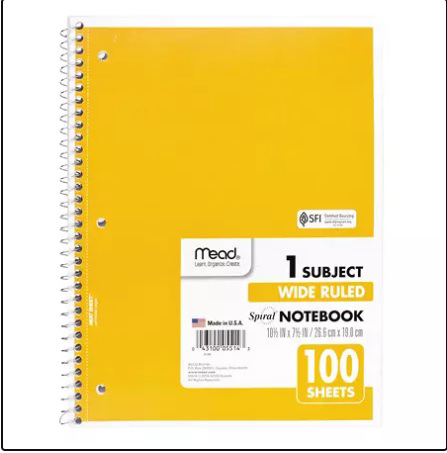 Mead Spiral Bound Notebook Wide