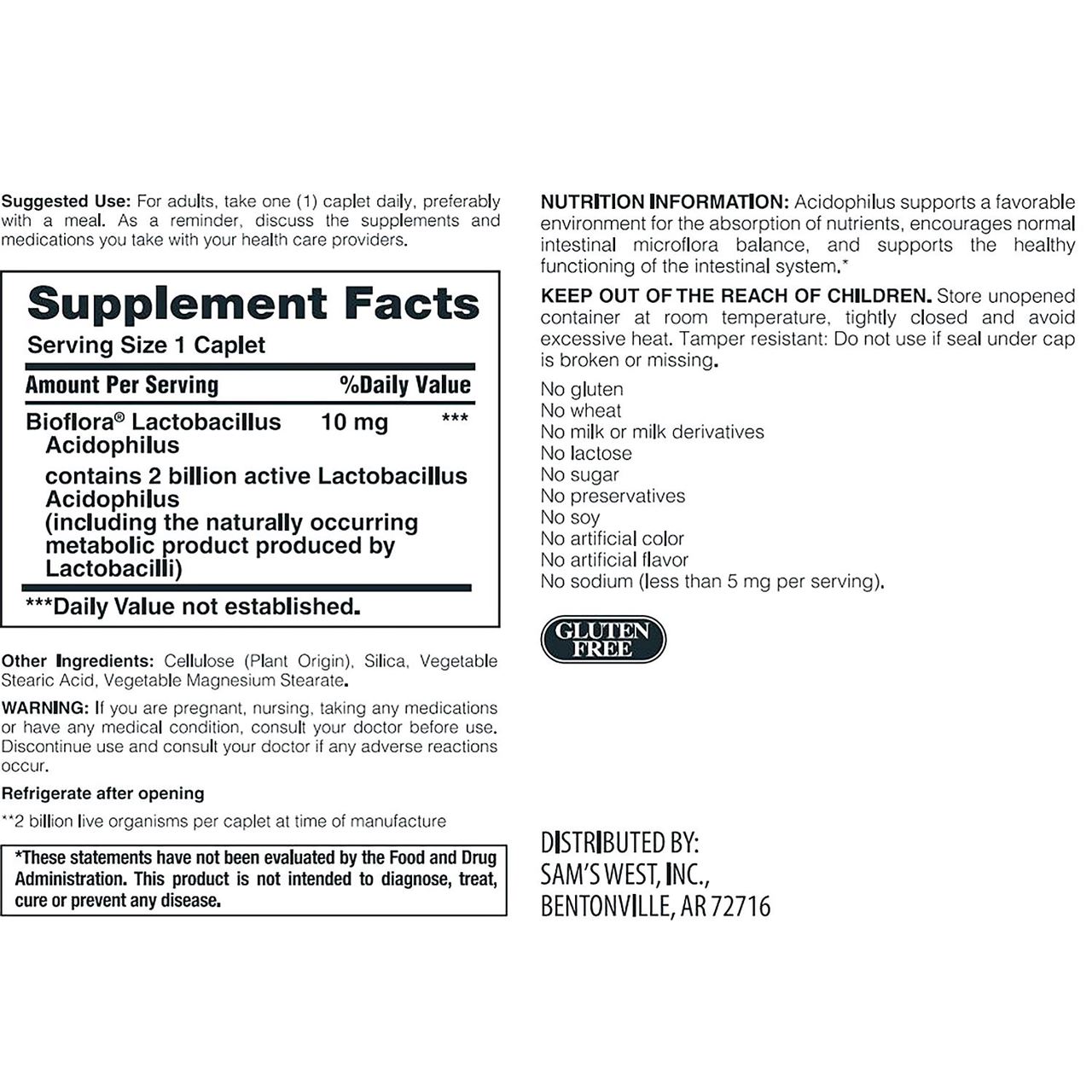 Acidophilus supports a favorable environment for the absorption of nutrients, encourages normal intestinal microflora balance, and supports the healthy functioning of the intestinal system.* 2 billion live organisms per caplet at time of manufacture. *These statements have not been evaluated by the Food and Drug Administration. This product is not intended to diagnose, treat, cure or prevent any disease Made with BIOFLORA
