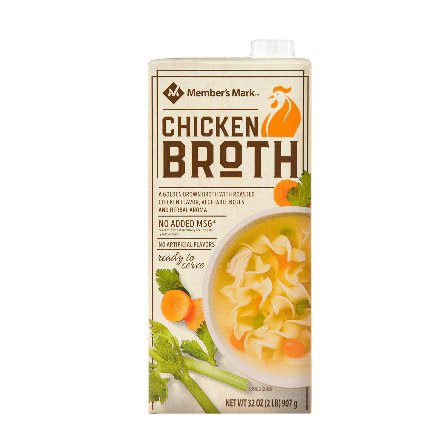 Member's Mark Chicken Broth is a golden broth with the flavor of roasted chicken and vegetable notes. This tasty chicken broth pairs well with any of your favorite cooking recipes. Whatever recipe you use it for, you and your family are going to enjoy Member's Mark Chicken Broth.