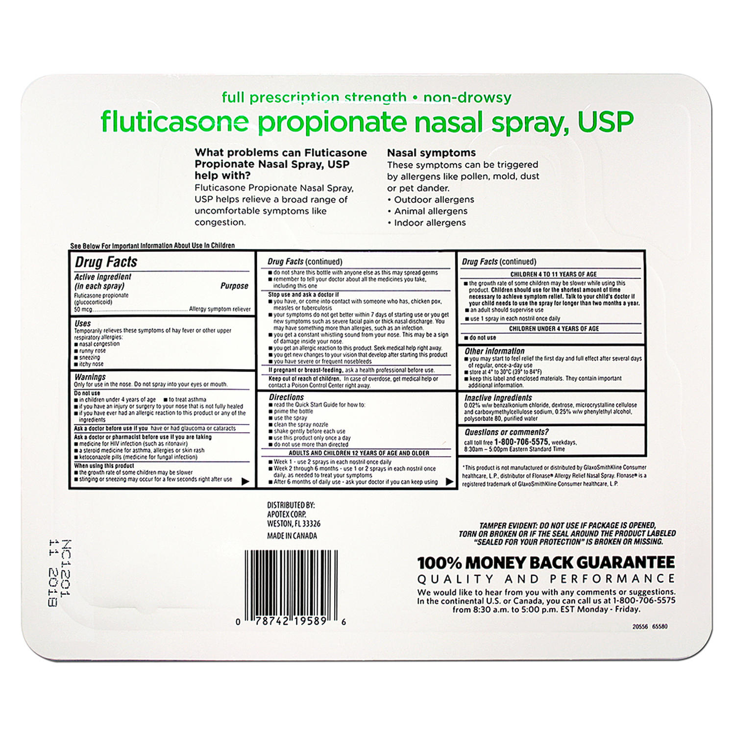 Member's Mark Fluticasone Propionate effectively delivers maximum-strength for all-day relief of allergy-related symptoms. The convenient, drip-free bottle provides a gentle, mess-free mist of nasal decongesting solution that soothes congestion, sneezing, and runny, itchy noses.