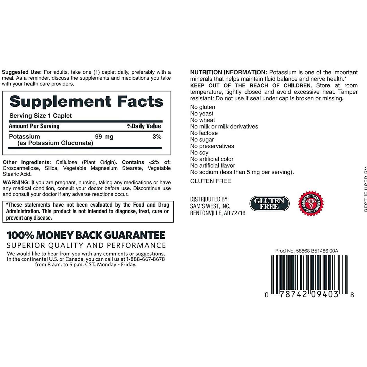 Member's Mark Formerly Simply Right Potassium Caplets - 500ct [595mg Potassium Gluconate] [99mg Potassium]