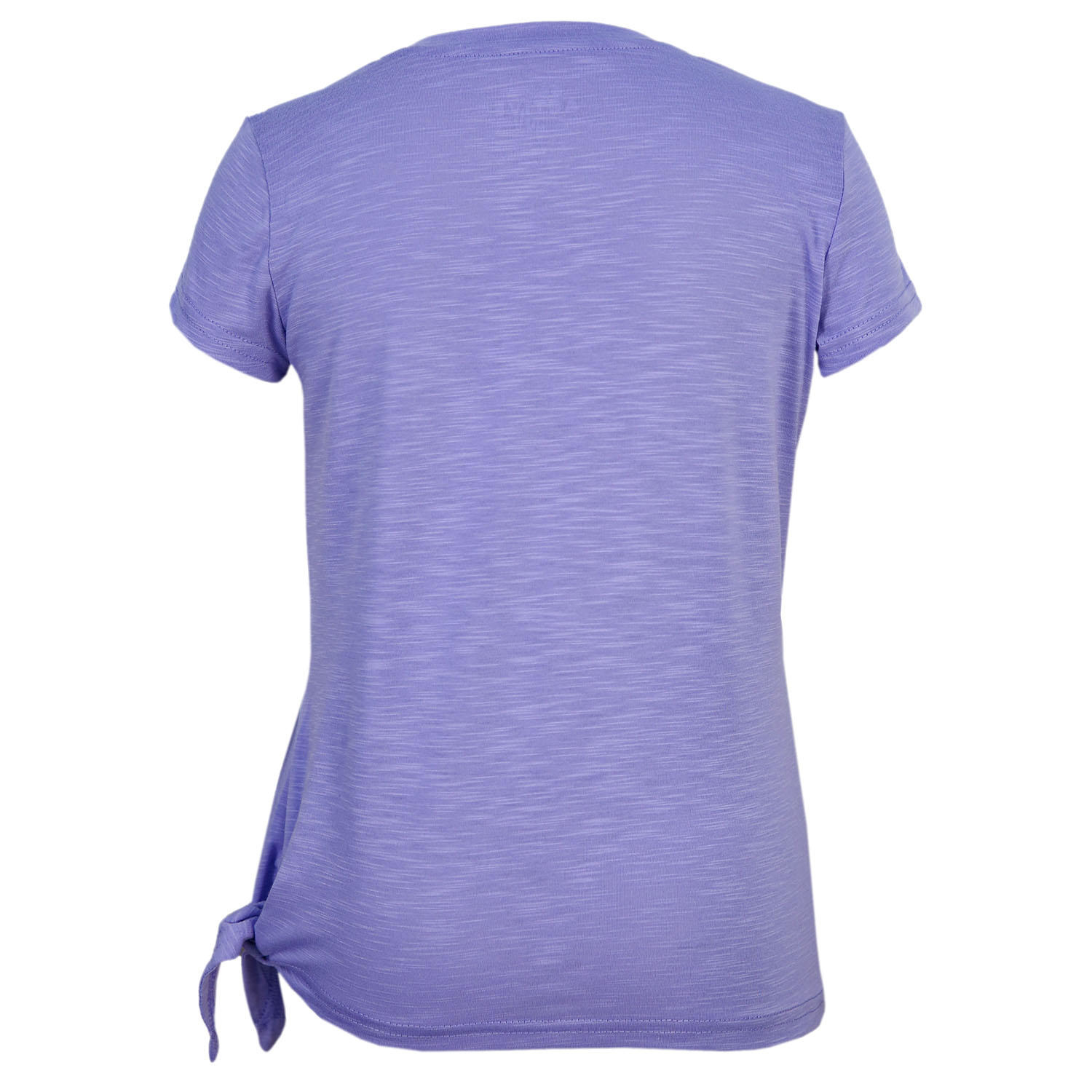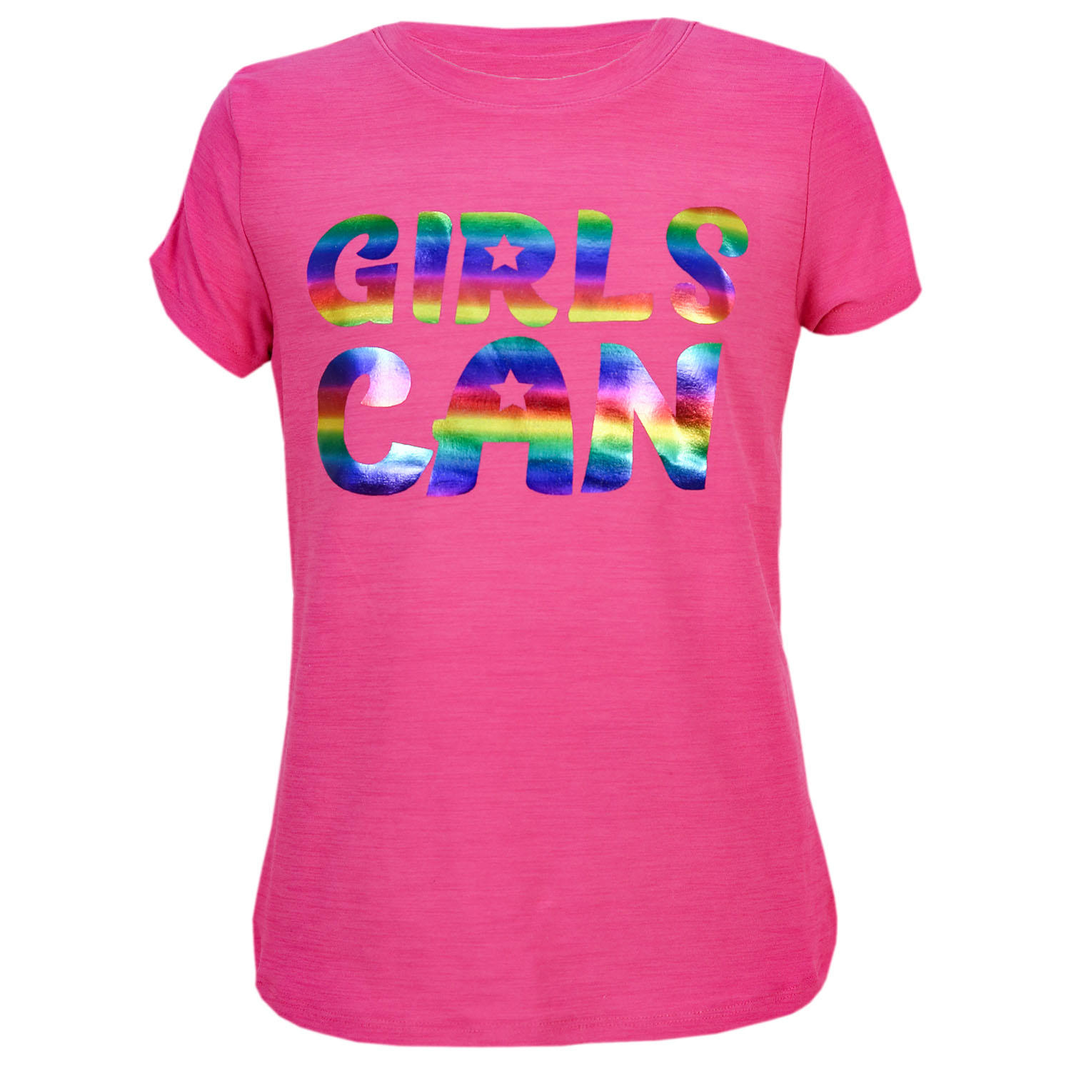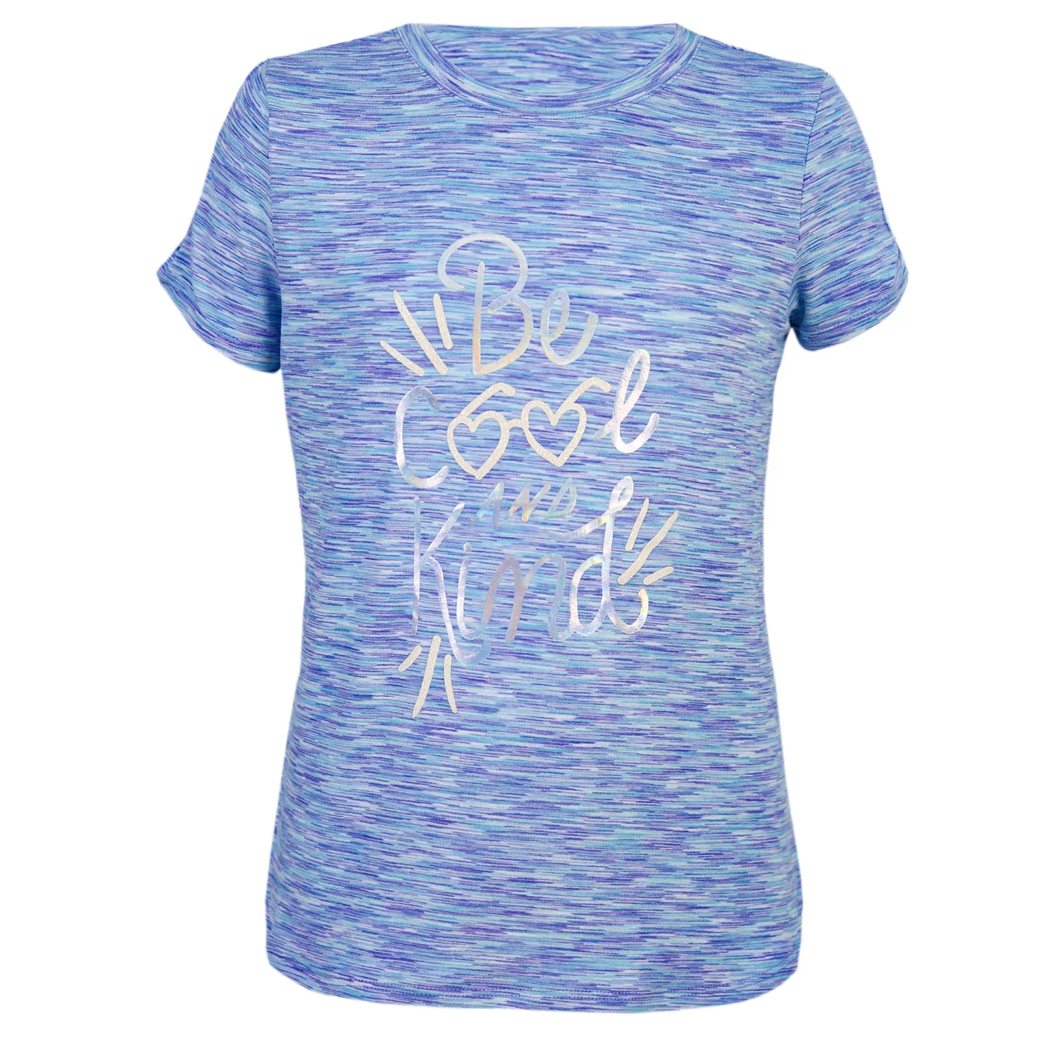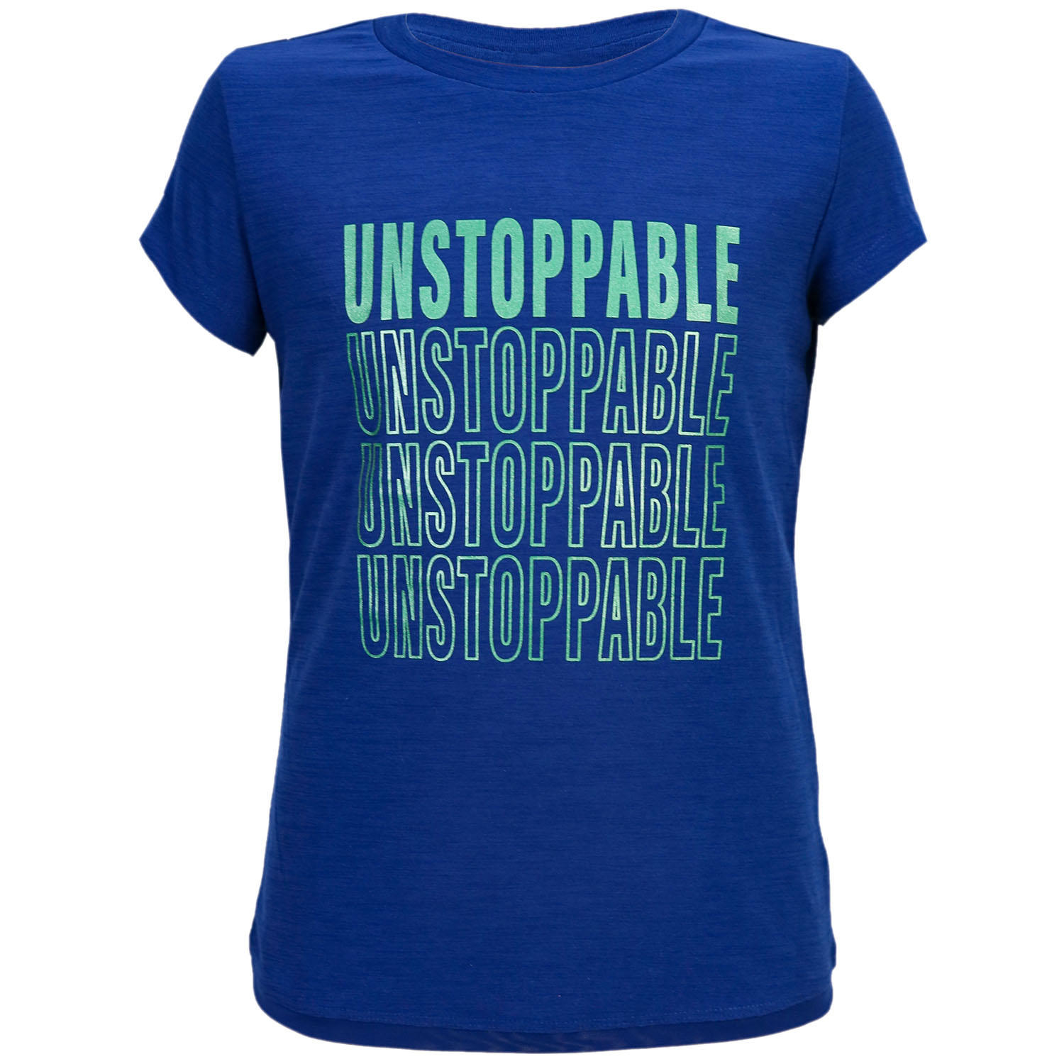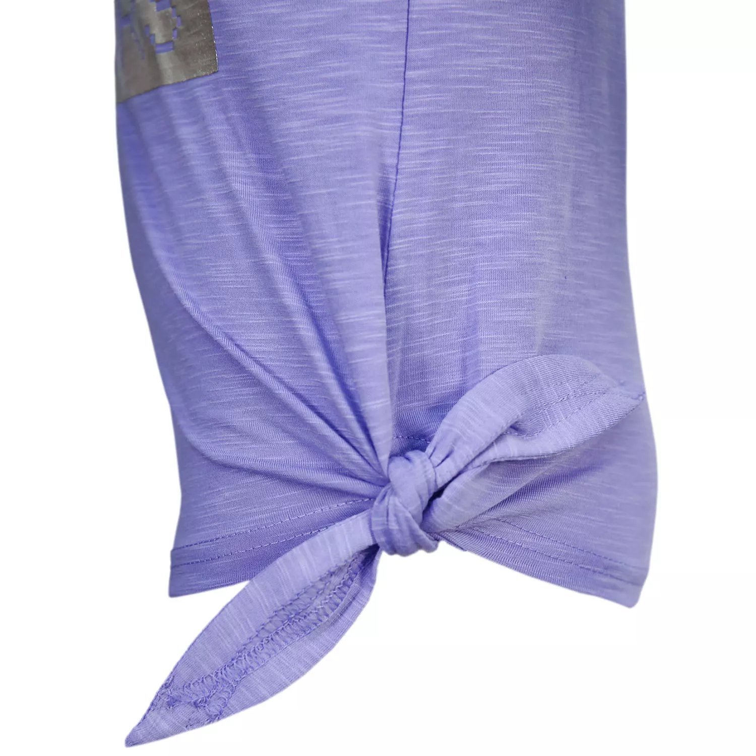 Adjustable side tie for her comfy fit. Super lightweight soft hand feel stretch fabric makes her cool and vibrant, She can wear it to school, on the playground or exploring the outdoors. The dropped shoulder and crew neck add sporty details for a cool vibe. Graphic Print adds just the right positive reinforcement. Tee comes with a hair tie so she can be ready to move.