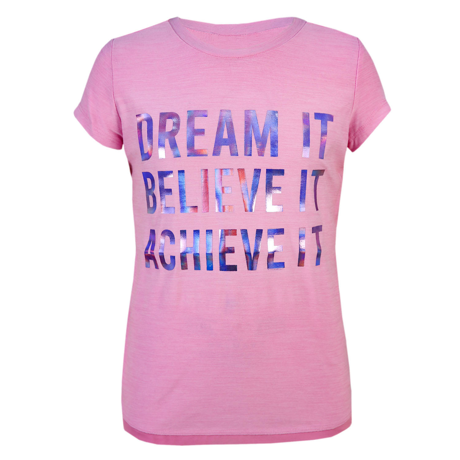 95%Polyester/5%Spandex - Tonal soft brushed heather jersey - (Girl's Can and Dream it Believe it Achieve it)