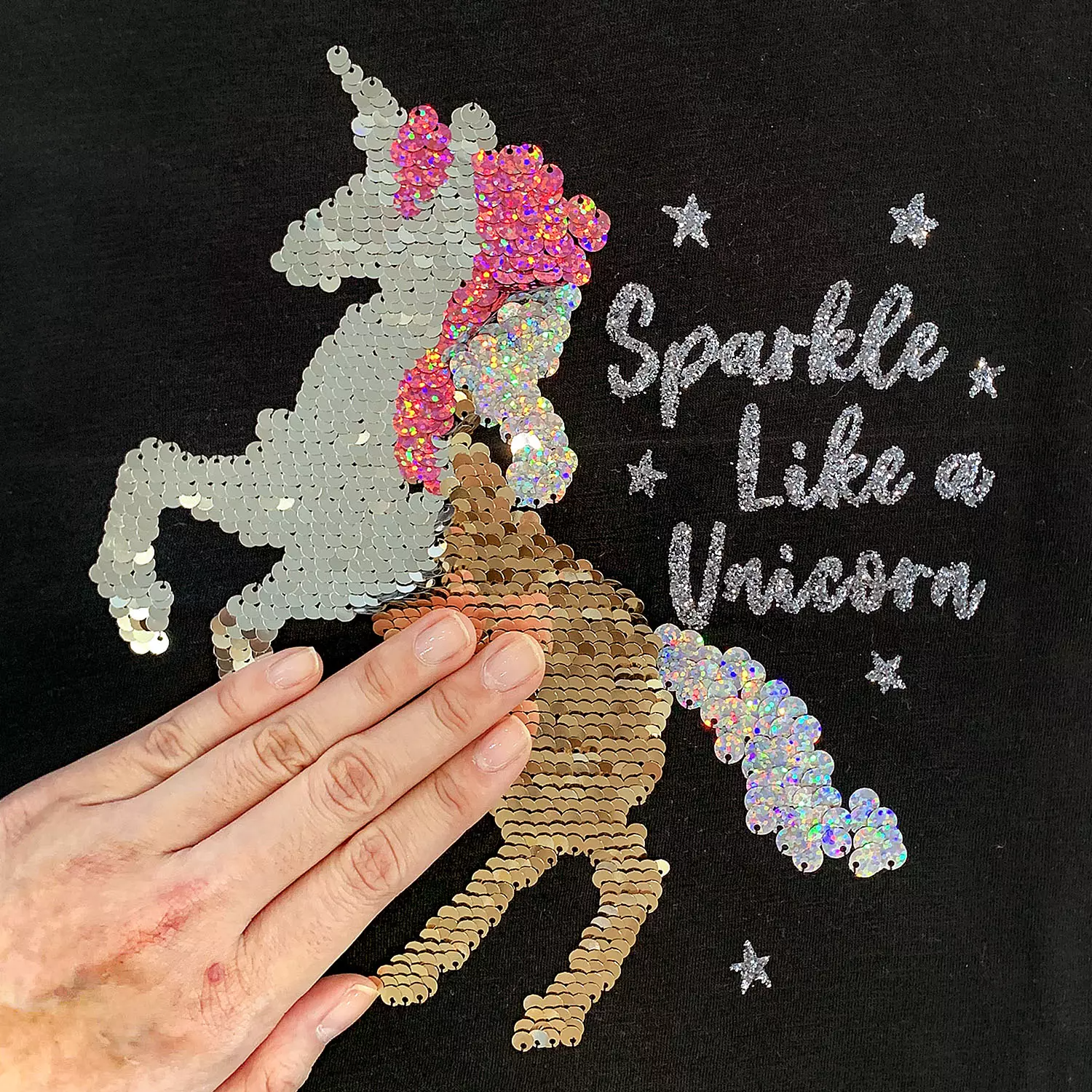 Two-sided flip sequins create two different looks