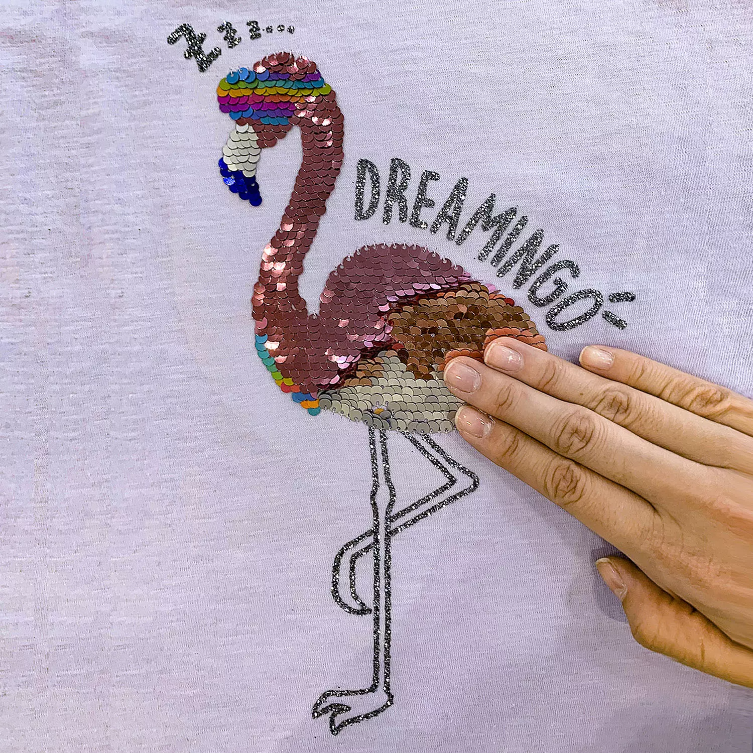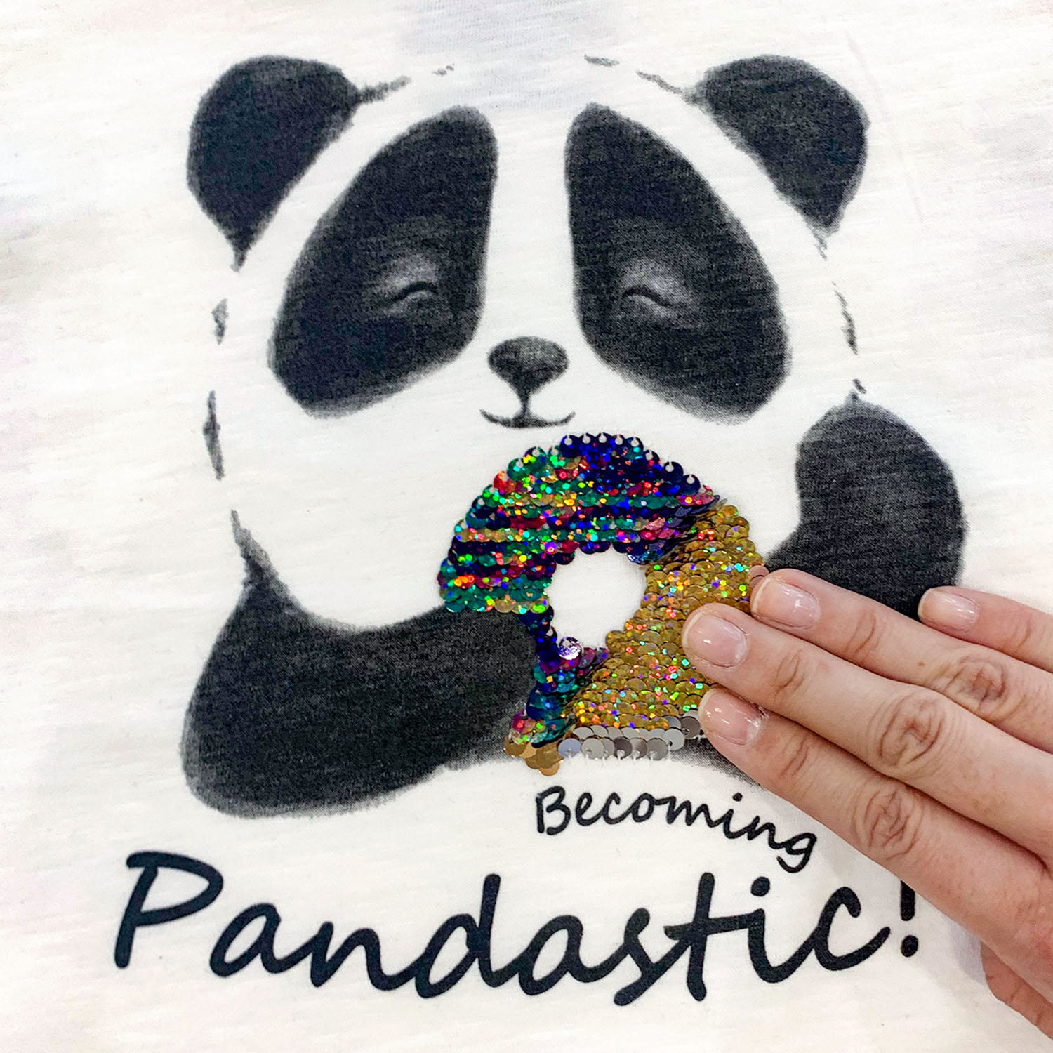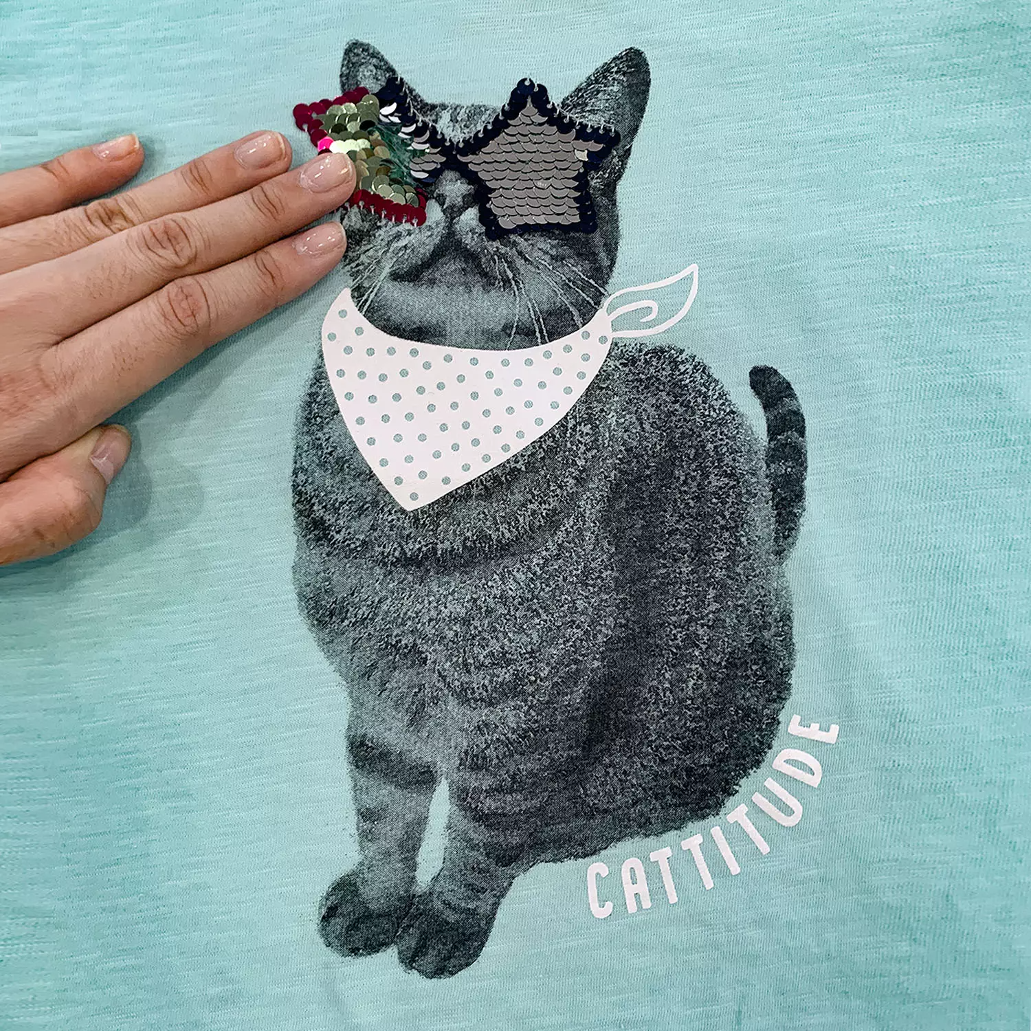Flip-sequin graphics add fun touch of shine to her look