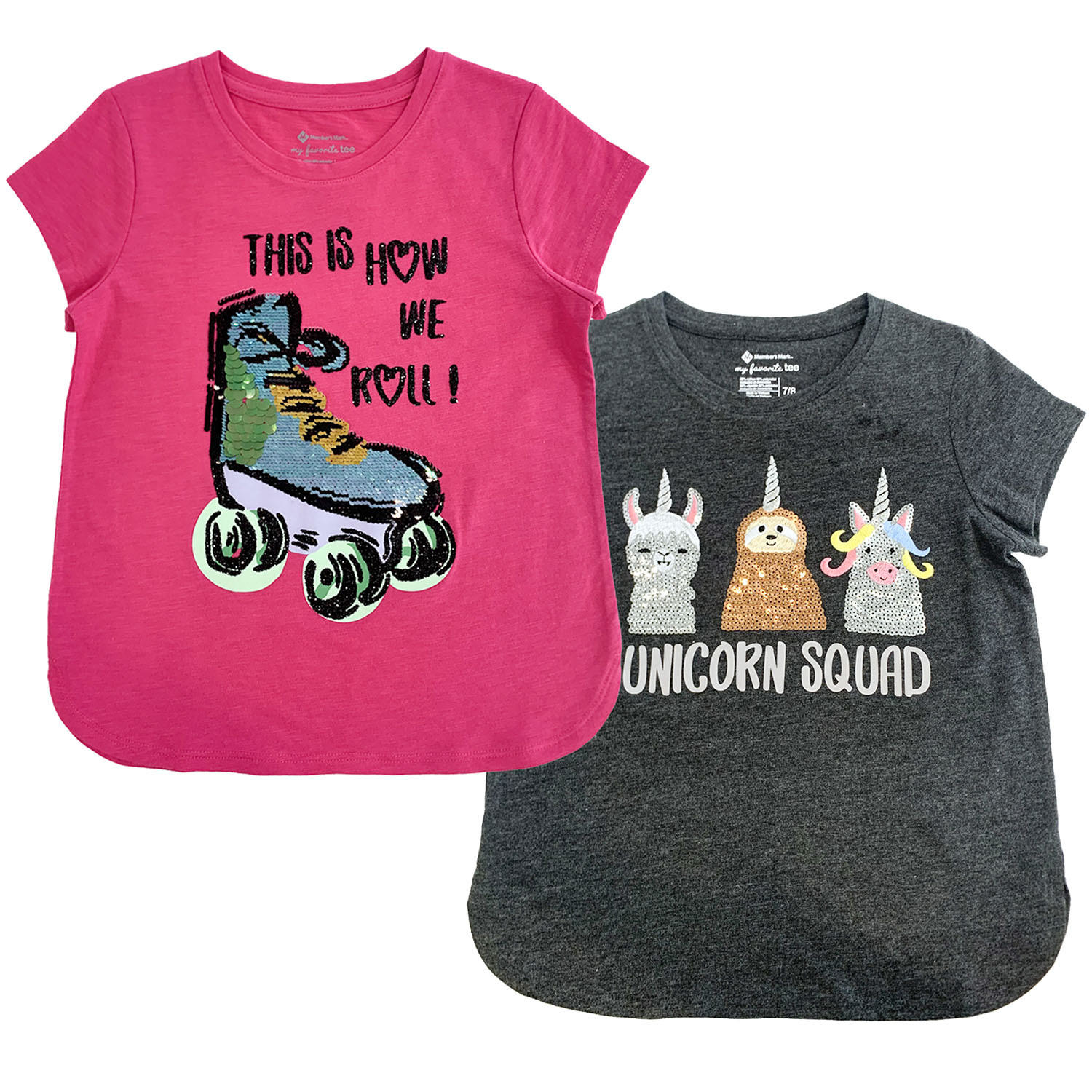 Member's Mark Girl's 2pk Flip Sequin Tee
