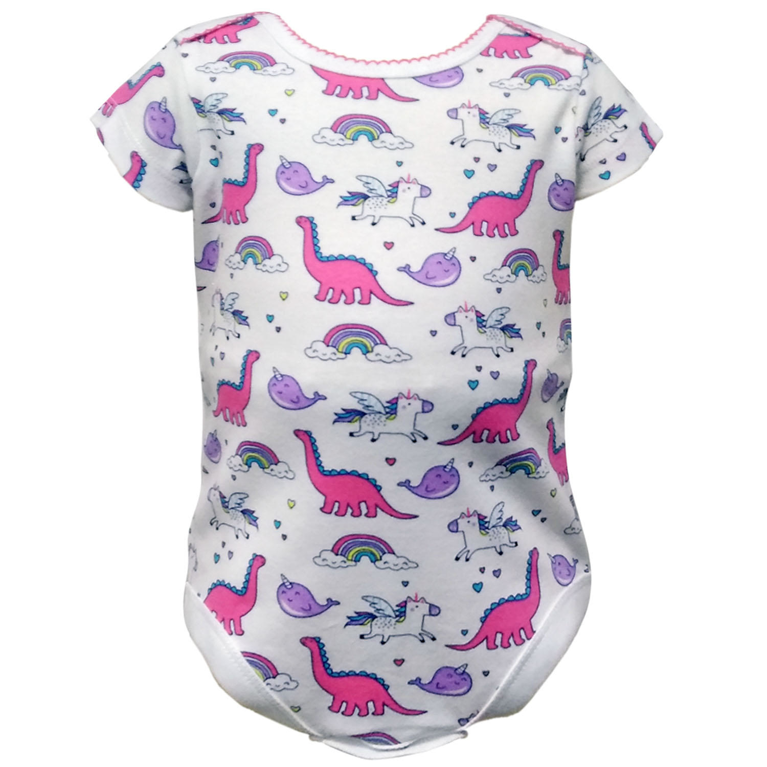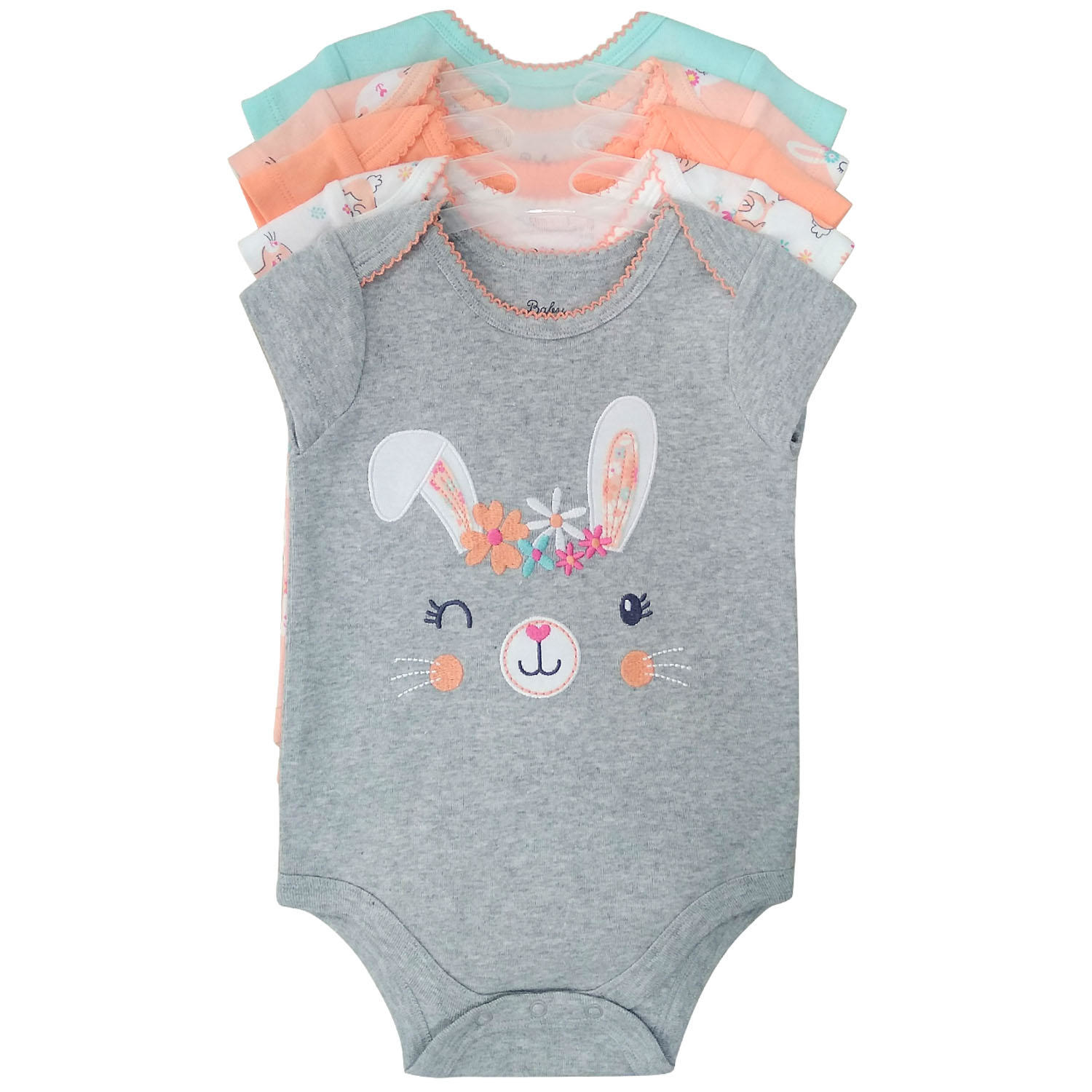 These will be your favorite 5 pack Bodysuits made with soft cotton for your baby to be comfortable all day and every day. These short sleeve Bodysuits come complete with overlap shoulder for easy over the head and crotch snap opening for easy breeze diaper changes