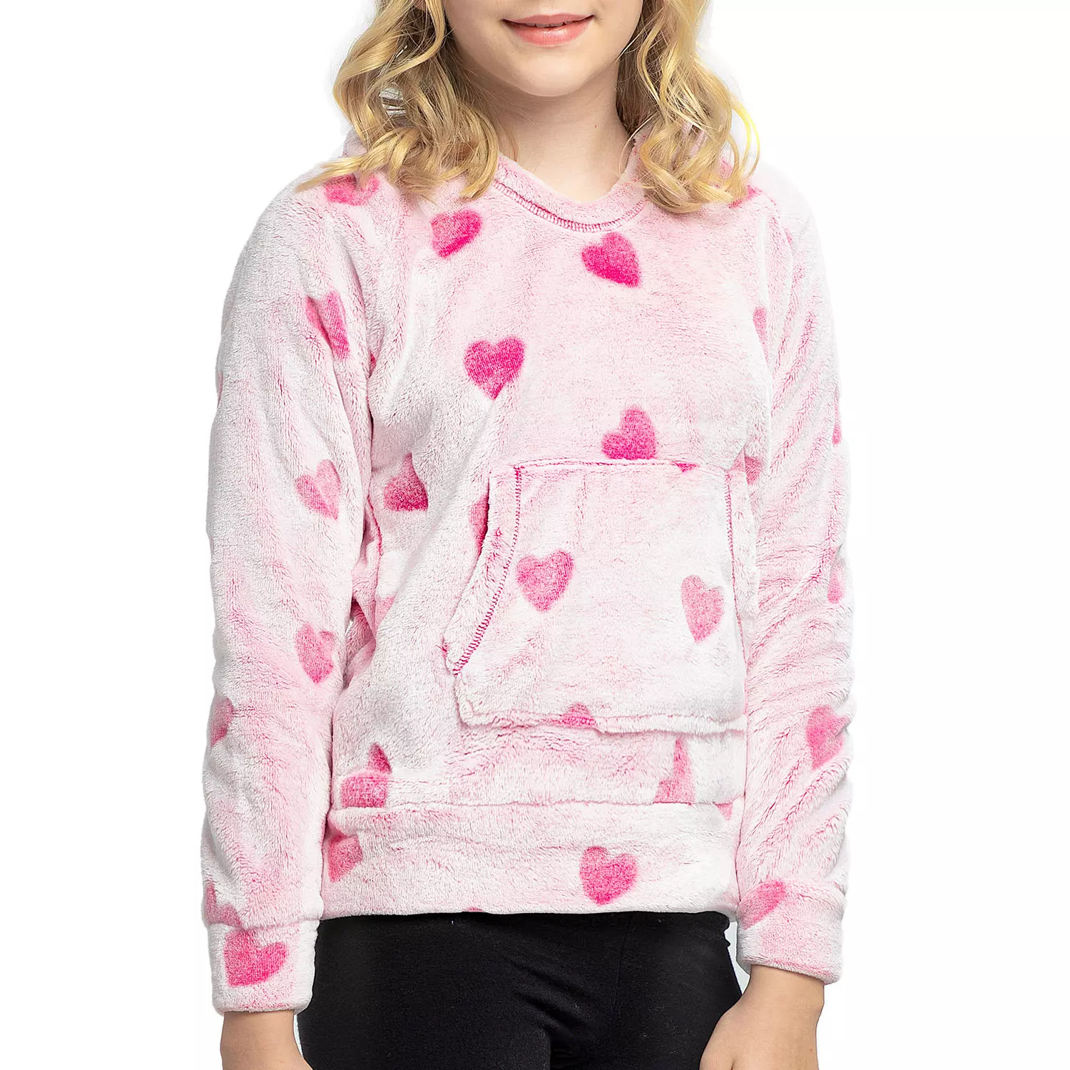 This pullover hoodie features glittery faux fur for an effortless touch of luxe your stylish child can add to nearly any style of bottoms. Versatile, plush and oh-so cute! The ultimate plush glitter faux fur or embossed pattern faux fur hoodie with kangaroo pockets. Nothing will look better or feel comfier on autumn-winter days. Casual, active and oh-so plush!