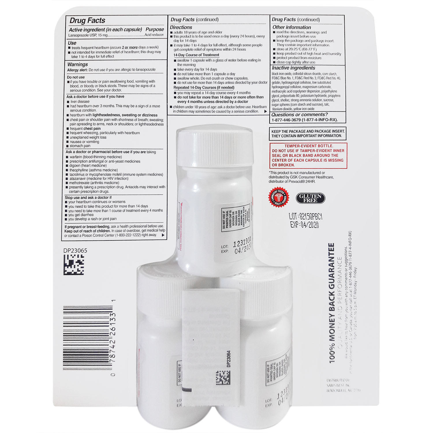 Get relief for frequent heartburn with Member's Mark Lansoprazole Delayed-Release Capsules. Lansoprazole is clinically proven to help treat frequent heartburn (occurs two or more days a week). This pack contains three 14-day courses of treatment. Please note that this drug is not intended for immediate relief of heartburn, and may take one to four days to achieve full effect.